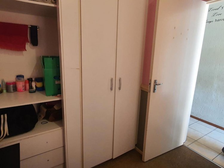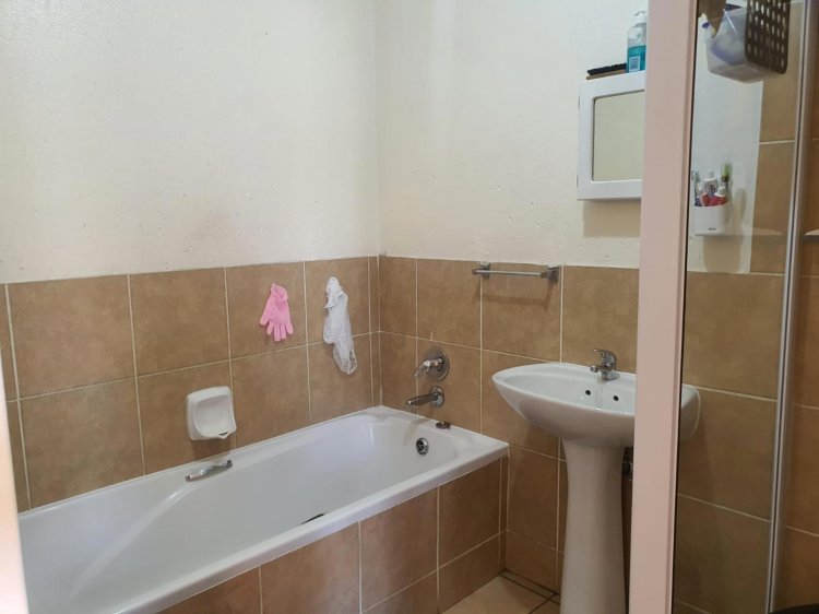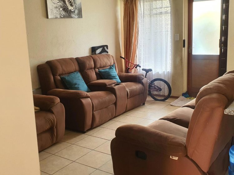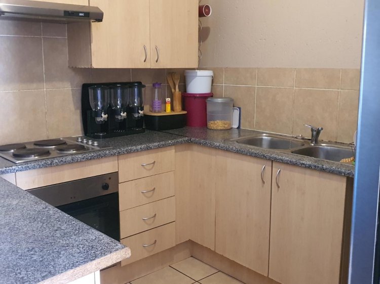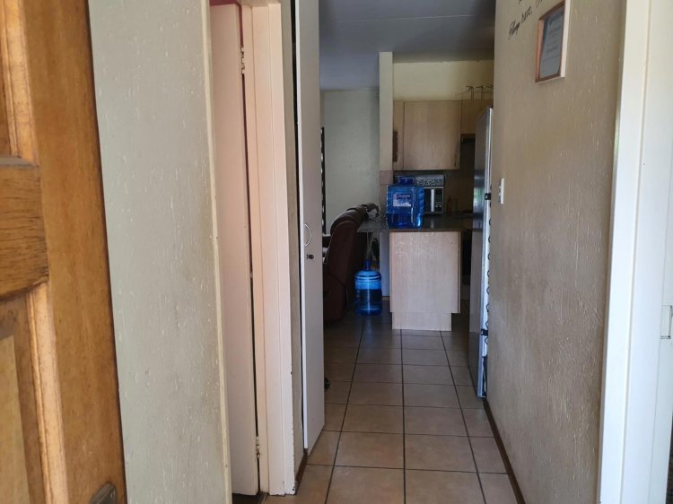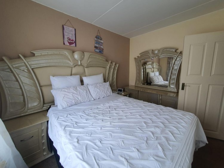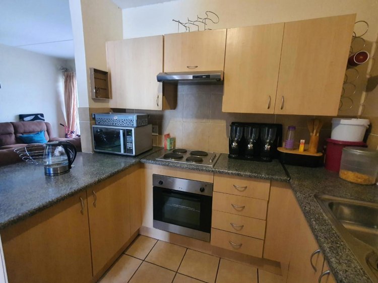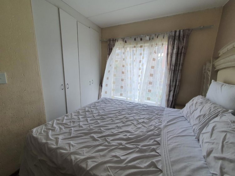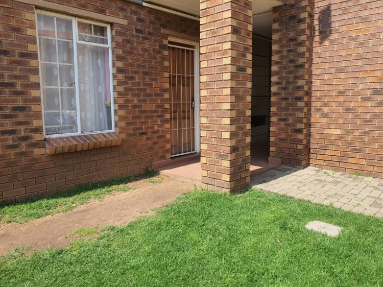 Welcome to this lovely corner unit, offering comfort, convenience, and peace of mind in a well-maintained, secure complex. Step out onto the tiled patio, the ideal spot to enjoy your morning coffee or unwind after a long day. Inside, you'll find two carpeted bedrooms with built-in cupboards and a neat tiled bathroom featuring a shower, bath, basin, and toilet. The tiled open-plan lounge and kitchen create a warm, functional living space, with ample cupboard storage and room for an under-counter appliance. Additional features include security gates on both doors, pre-paid water and electricity, and 24-hour security with smart-access control. Enjoy peace of mind in a fully walled complex with electric fencing, complete with a braai area and children's playground for relaxed family living. Conveniently located close to schools, shopping malls, and with easy access to the N12 and N17 highways, this home perfectly combines secure living with everyday convenience.