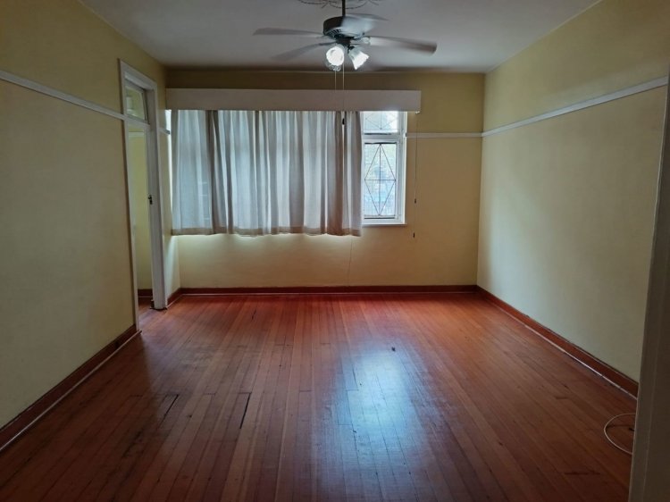 This apartment is on the ground floor and features high ceilings and gleaming Oregon pine flooring.