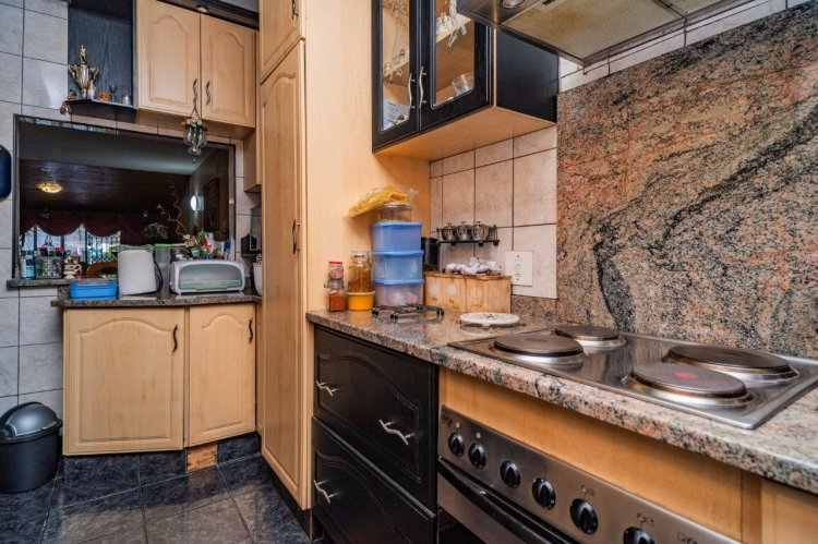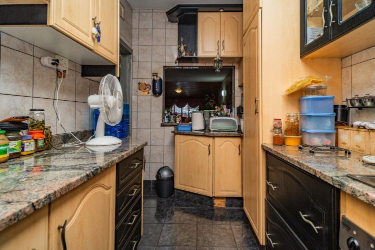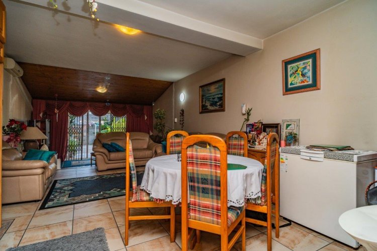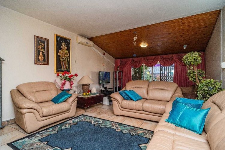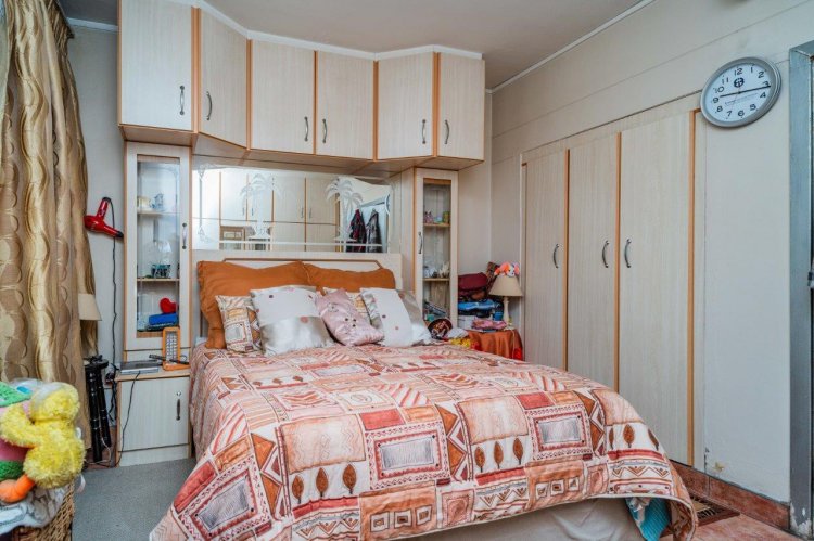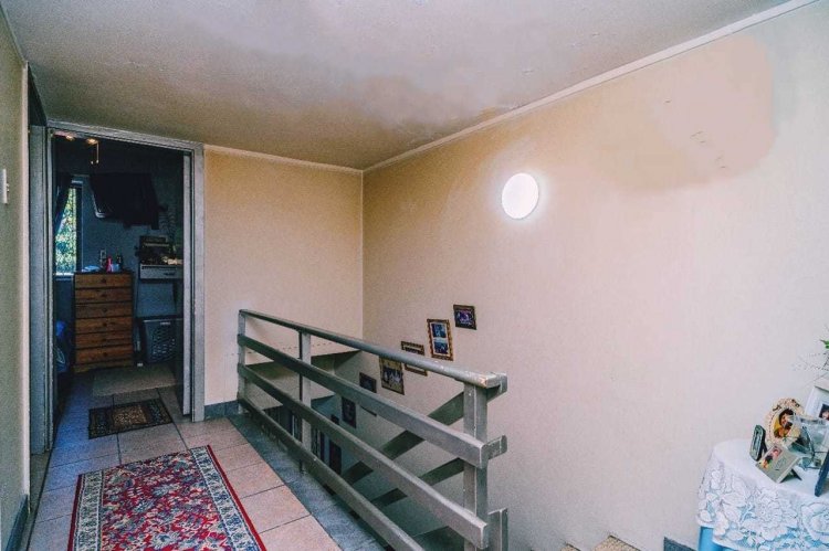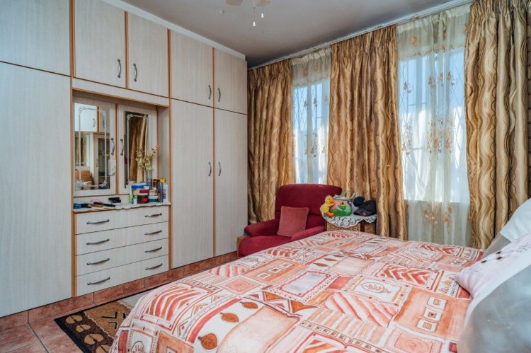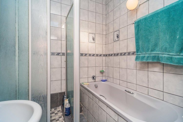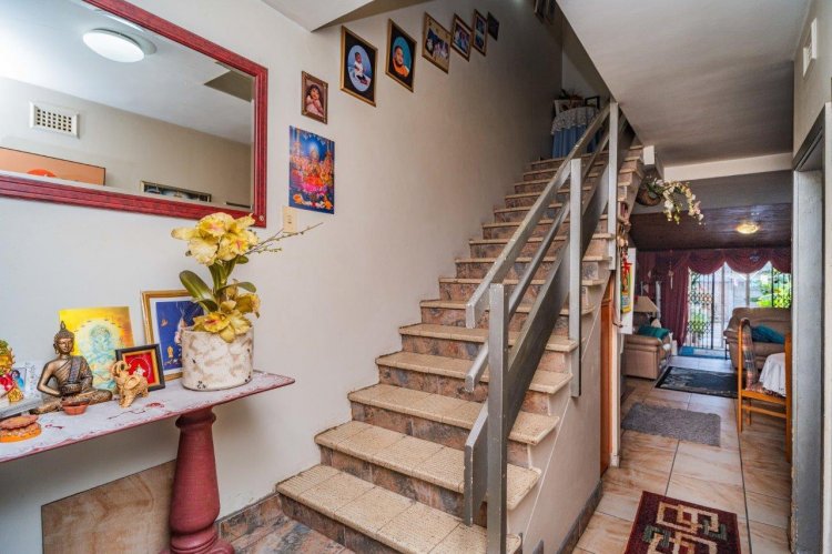 Upstairs you’ll find two well-sized bedrooms, both with built-in cupboards, tiled floors, and ceiling fans. A family bathroom services the home, with a separate toilet for added convenience.