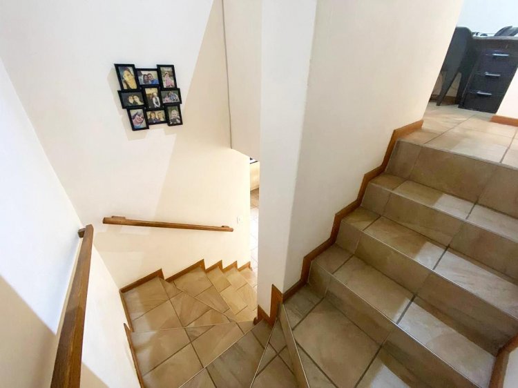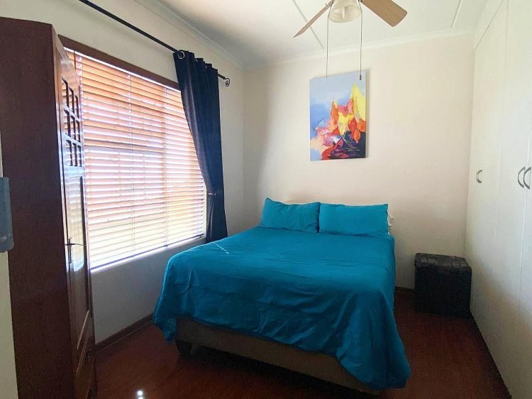 Upstairs, both bedrooms are enhanced by warm wooden flooring. The main bedroom features an ensuite bathroom with a shower, while the passage includes a dedicated study nook with a granite worktop—ideal for working remotely or completing schoolwork.