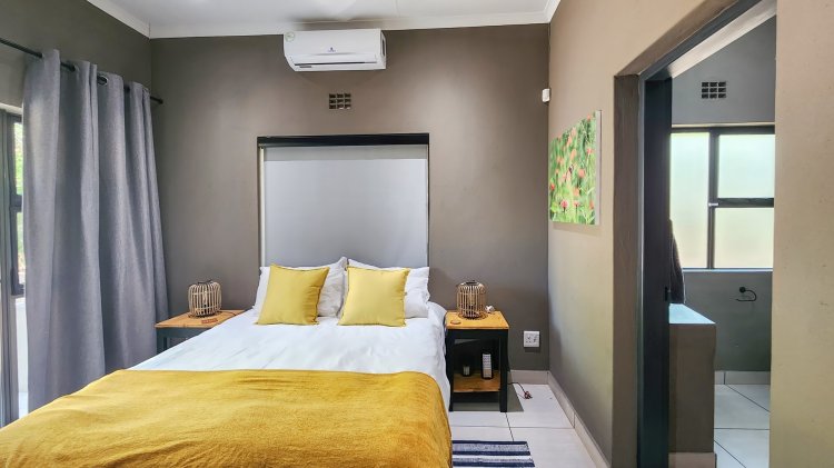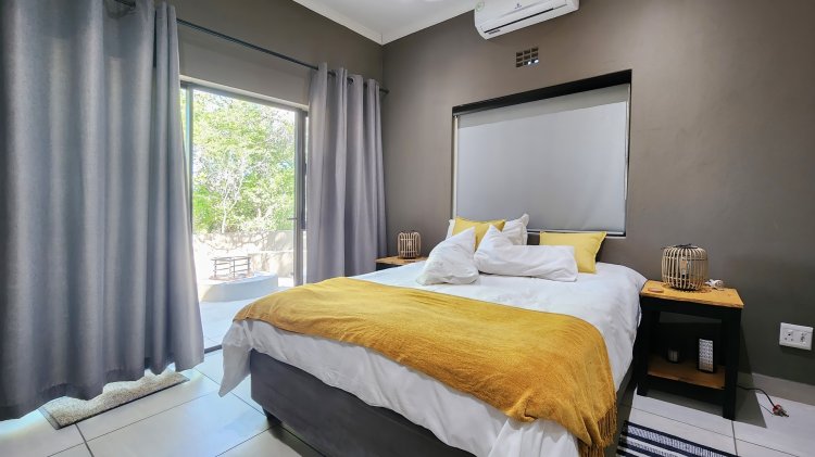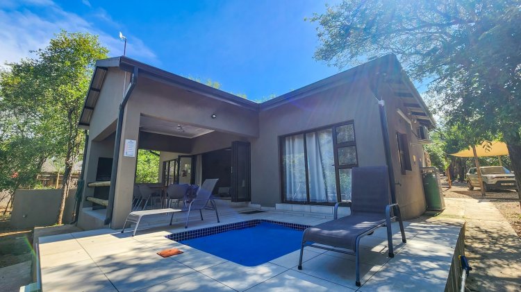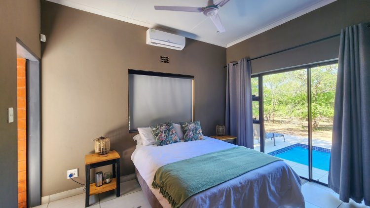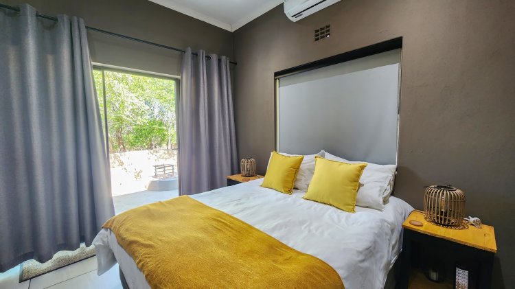This modern 2-bedroom, 2-ensuite home is perfectly situated on tranquil parkland in Marloth Park, offering a true bush-living holiday experience. Designed for comfort and relaxation, both bedrooms feature prepaid air-conditioning, ensuring year-round comfort.