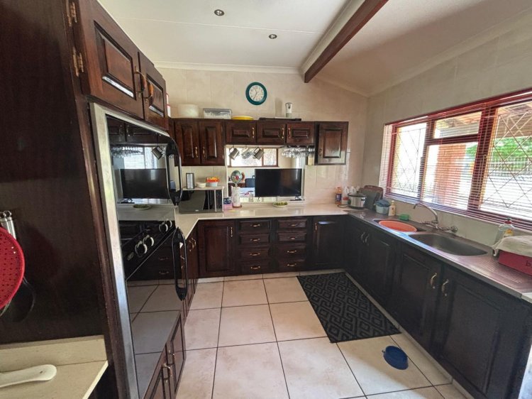 Lower Level – Studio Flatlet • Large, open-plan layout with bedroom and lounge area, sectioned by a room divider. • En-suite shower, toilet, and basin. • Compact dining area and a functional kitchen with ample cabinetry, laundry plumbing, and gas stove.