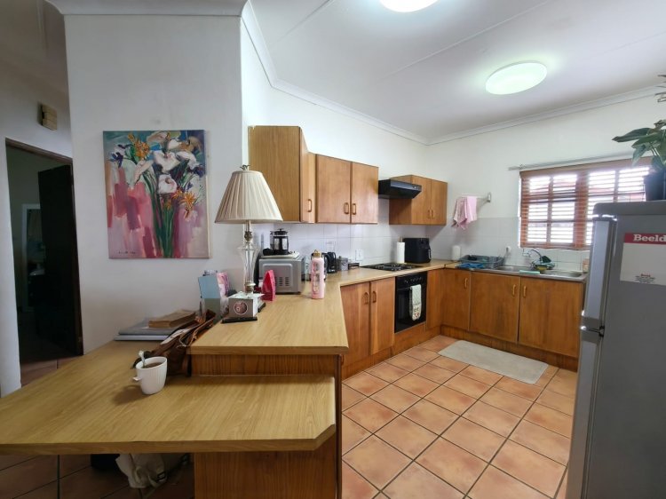 The home features two well-sized bedrooms and a neat, modern full bathroom. The spacious inviting living room with air-conditioning, flows seamlessly into a spacious kitchen, offering ample cupboard space and room to cook and connect. Step outside to a private patio with a built-in braai — ideal for relaxed weekends and entertaining friends and family.