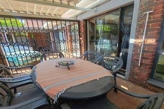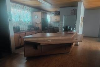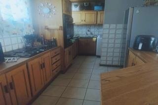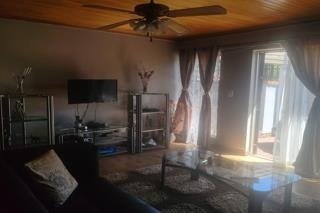Step inside to a bright, open-plan living space finished with laminated flooring throughout. The lounge and dining area connect effortlessly to a well-equipped kitchen featuring solid wooden cupboards, an oven, and a separate scullery.