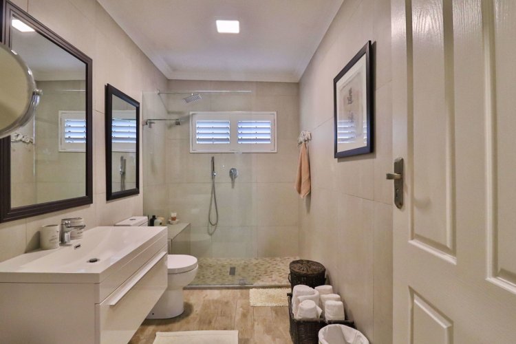 Walk back to enjoy the 2 Hollywood style swimming pools with covered lapas and tanning areas. The farm style Caesar stone kitchen has everything available at the fingertips of the gourmet chef, while the rest of the family relaxes in the open plan living area. The simply elegant bathrooms are ultra modern and fully equipped with luxurious towels. The white American shutters throughout the apartment allow for you to leave the sliding doors open while enjoying the sea breeze, adding a touch of class to your home.