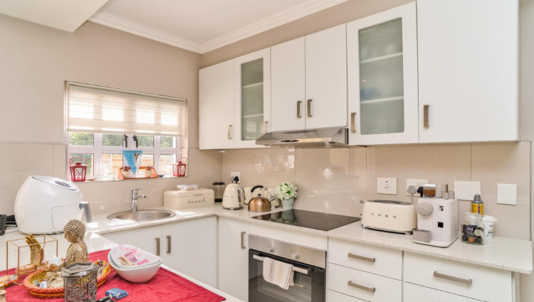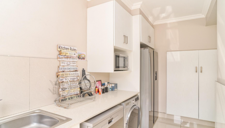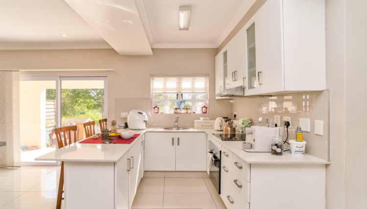 Three well-sized bedrooms, each fitted with built-in cupboards, along with three stylish bathrooms. A double garage completes this exceptional home, offering both comfort and practicality in an unbeatable location. Enclosed courtyard – ideal for entertaining or storage The complex is impeccably maintained, with a pristine communal pool for residents to enjoy.