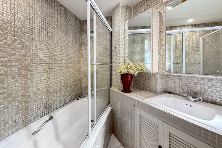 3 bedrooms (main en suite) plus family bathroom. Loads of cupboards. Enclosed balcony with sliding windows. Parquet flooring (under carpet) except for main bedroom.