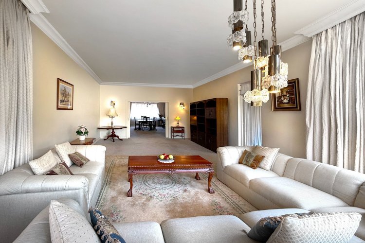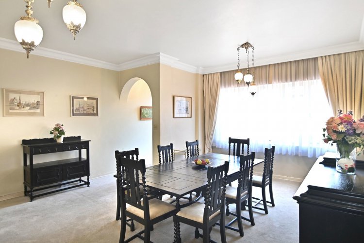 Entrance hall leads to large dining room and lounge separated by beautiful sliding door. A magnificent bay window allows natural light into the grand lounge. Large kitchen.