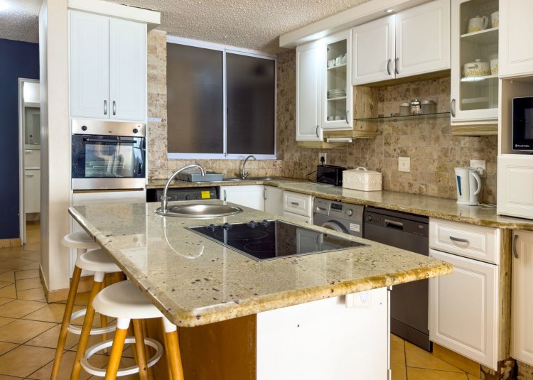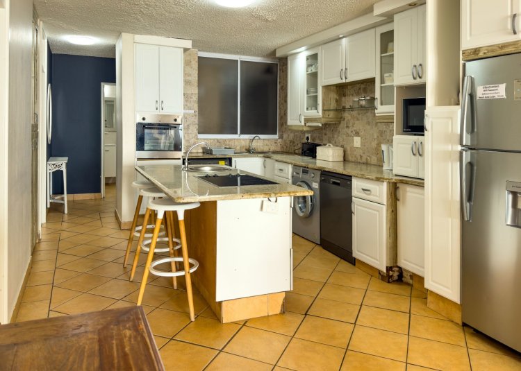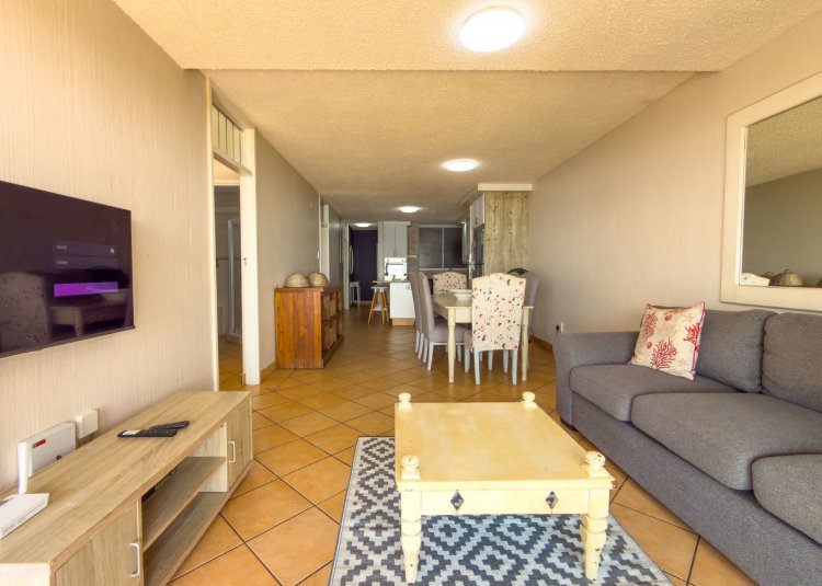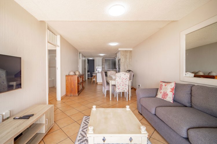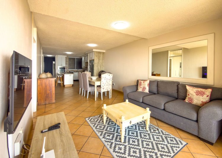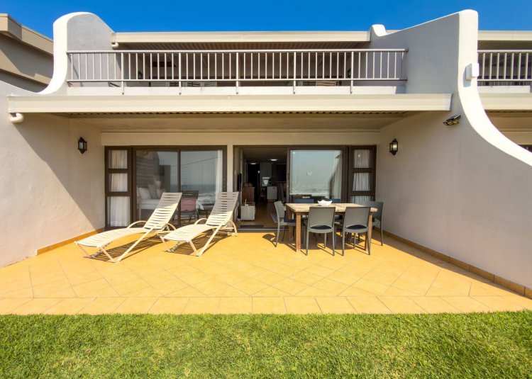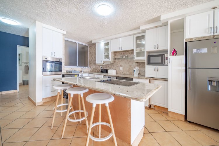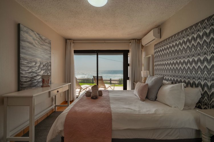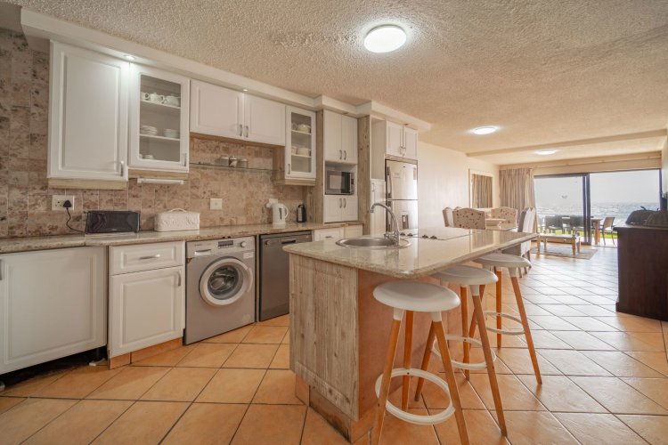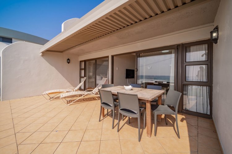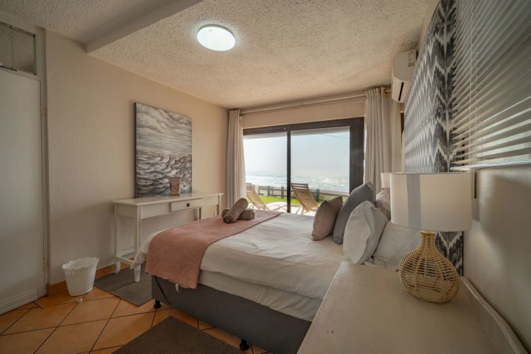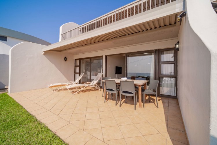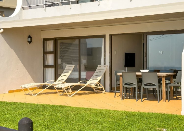 The open-plan layout flows onto a spacious patio where panoramic sea views are enticing with the sound of ever-present crashing waves right at your door. The fully equipped kitchen with ample cupboard space is ideal for holiday stays. The spacious patio caters for sun-uppers, sundowners, braais and everything in-between while taking in the ocean.