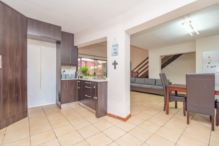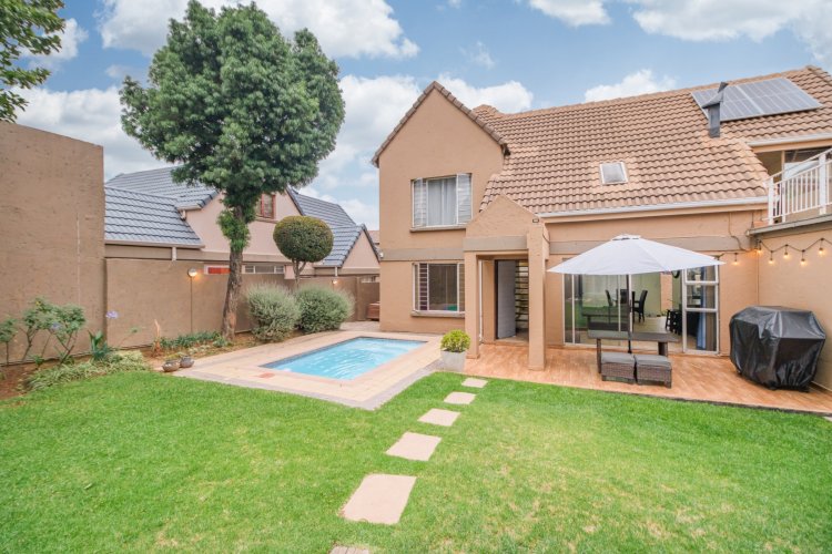 This beautiful 3-bedroom home offers a perfect blend of comfort and style. The main bedroom, privately positioned upstairs, features a walk-in closet, an en-suite bathroom with a corner bath and shower. The spacious open-plan living areas flow seamlessly to a charming garden and a plunge pool, ideal for entertaining or relaxing. Situated in a secure, well-maintained complex close to all amenities — this home is move-in ready and full of character.