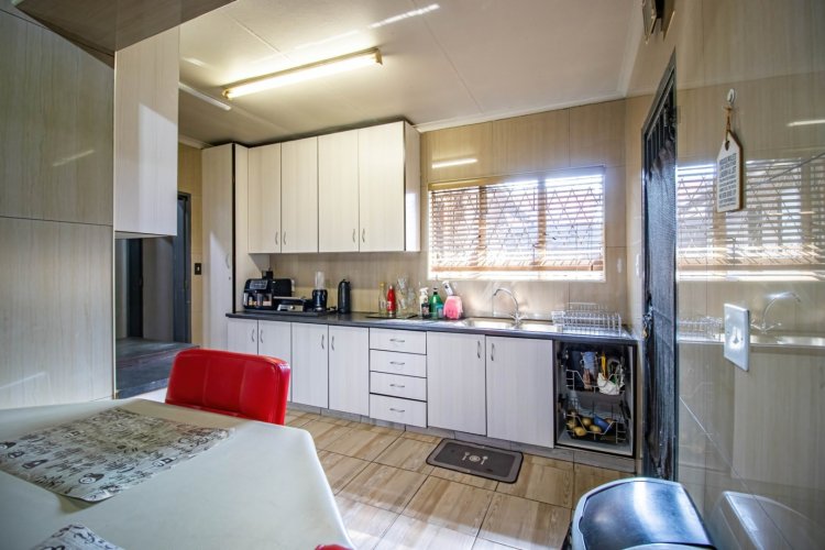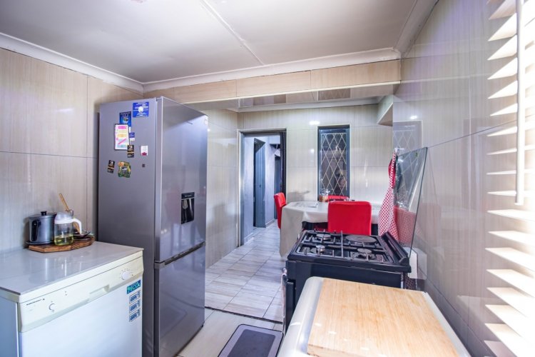 A spacious, fully fitted kitchen with ample cupboard space is complemented by a separate scullery, making daily living both practical and enjoyable. The home also boasts a separate lounge and dining room, providing comfortable spaces for relaxation and entertaining.