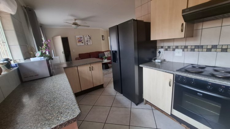 This beautiful 3-bedroom, 2-bathroom home is situated in a very well-kept, secure, and neat estate. The house offers an open-plan kitchen, lounge, and dining area, creating a welcoming and spacious living environment.