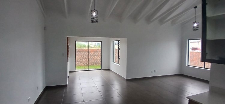 The open-plan design extends into an indoor braai room, with sliding doors that open onto the garden – ideal for effortless indoor-outdoor entertaining. The property features a neatly grassed, fully walled garden, providing a safe environment for children and pets.