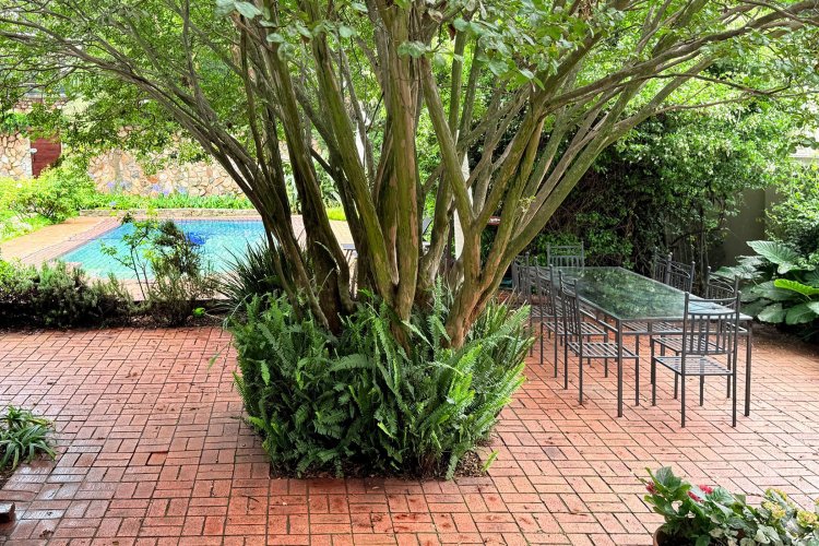 Set on a 1223 m2 stand, the property features inviting verandas that overlook magnificent, manicured gardens, complete with a charming outdoor dining area, braai, and a sparkling pool—ideal for leisurely family days filled with fun and relaxation.