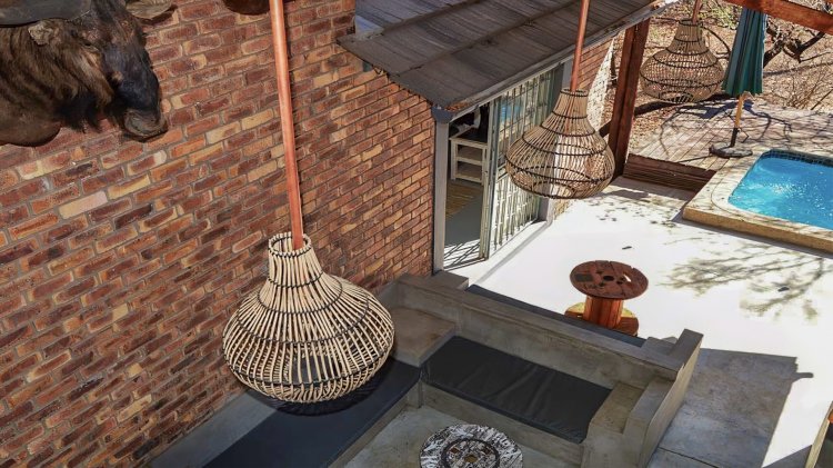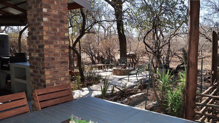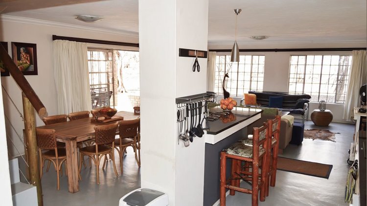 Glass doors from the living area lead out to an undercover patio complete with a built-in braai, creating the ultimate entertainment space. The sparkling blue swimming pool adds to the appeal, all set against uninterrupted parkland views, offering privacy and a peaceful, nature-filled backdrop.