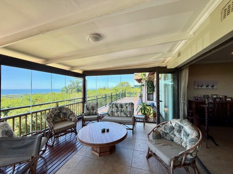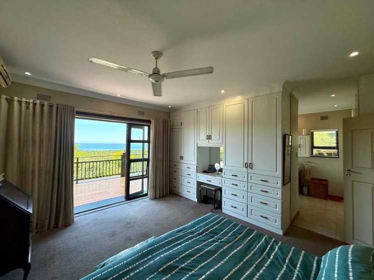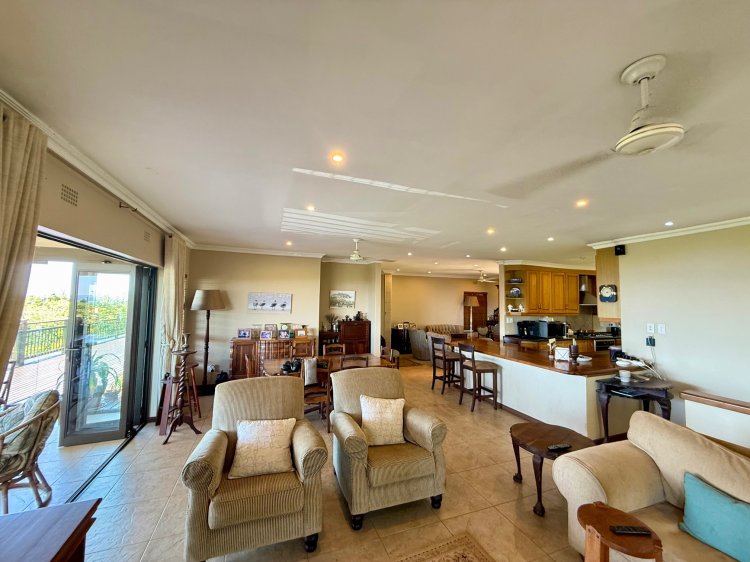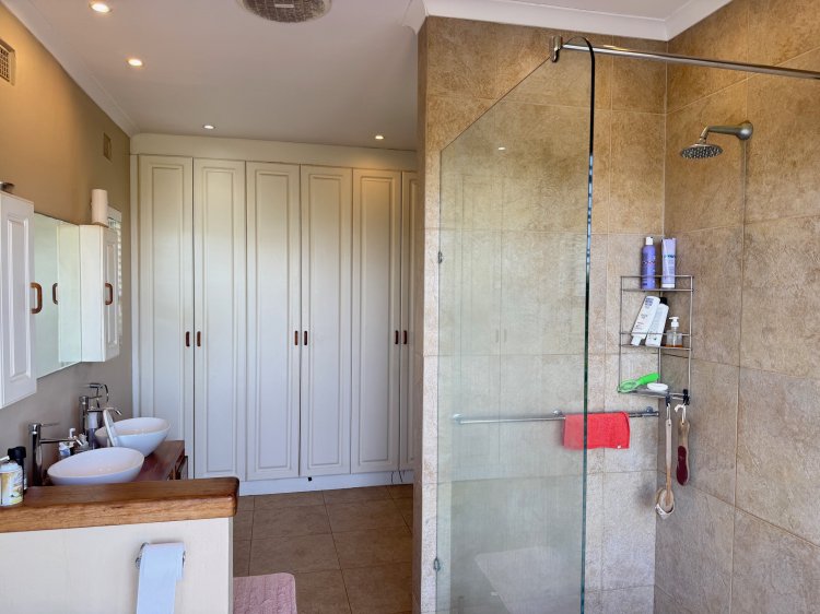 An exclusive home offering uninterrupted, panoramic ocean views, this property is designed to celebrate its breathtaking setting. Almost every room enjoys a sea view, creating a constant connection to the natural beauty beyond. The open-plan kitchen flows seamlessly into the lounge and TV room, extending to an inviting front courtyard, perfect for relaxed afternoons and effortless entertaining, surrounded by a lush indigenous garden. Indoor–outdoor living is at the heart of this home. Two of the three bedrooms open directly onto the deck, while the spacious main bedroom features an en-suite bathroom, both enjoying magnificent ocean views. A chairlift provides convenient access between the home and the garage level. The driveway leads to double automated garages, complemented by additional workspace and storage. A separate work or hobby room, with garden access, adds further versatility. Additional features include a solar system with 12 panels and five lithium batteries, as well as a 10,000-litre water storage tank with pump.