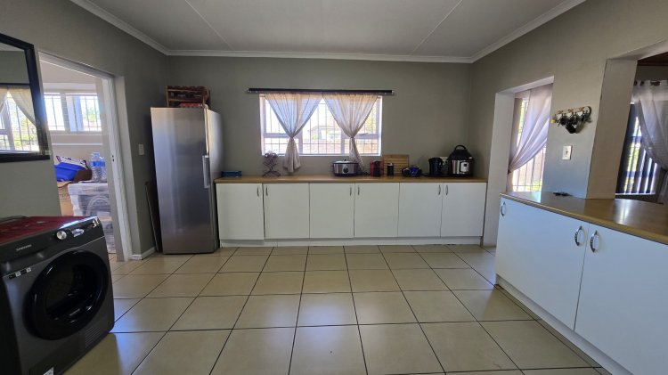 The home features three spacious bedrooms and two and a half bathrooms, thoughtfully designed to accommodate modern family living. The open-plan living area creates a welcoming flow, complete with a built-in braai — ideal for relaxed evenings and entertaining guests year-round.