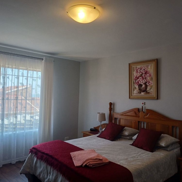 A short walk down the passage and you find the large beautiful Main Bed room with loads of cupboard space, en suite bathroom and once again more beautiful views!! Oh and don't forget the guest toilet and basin!