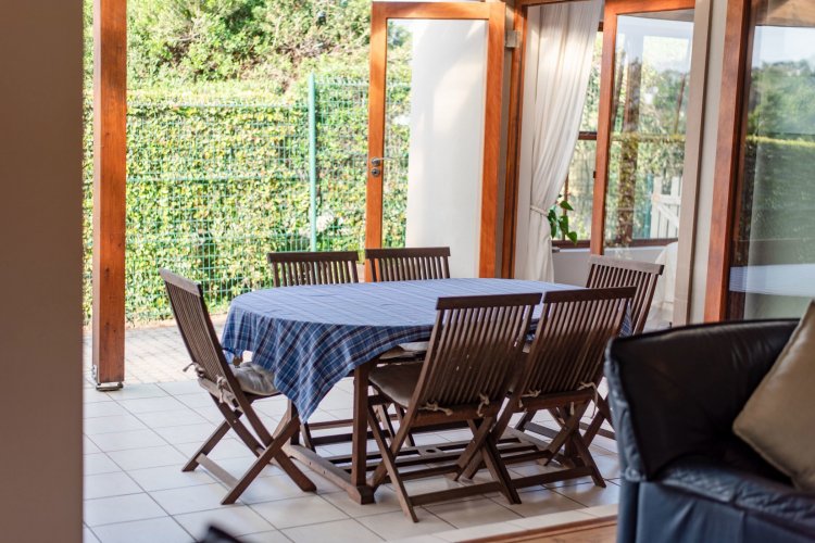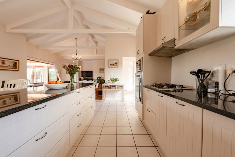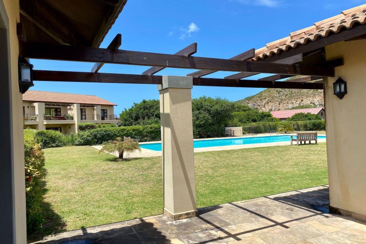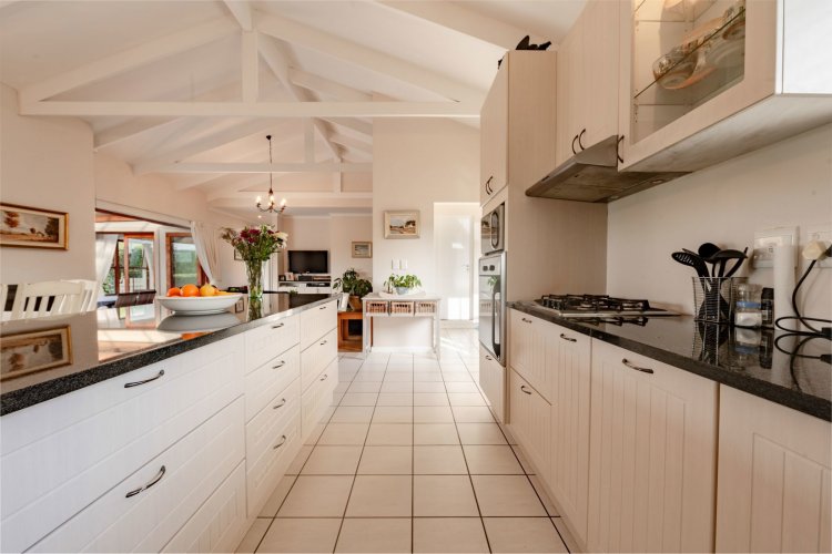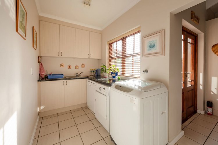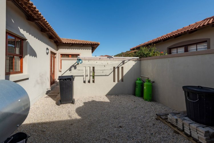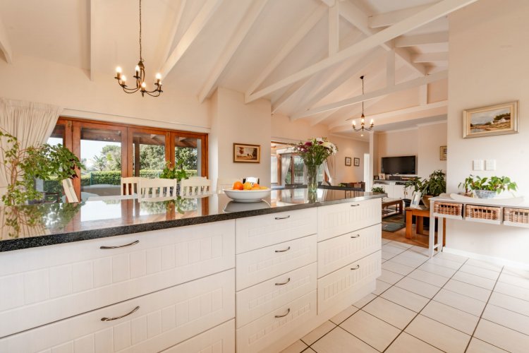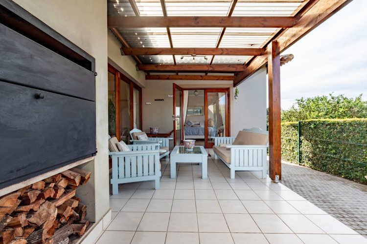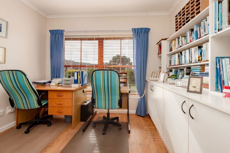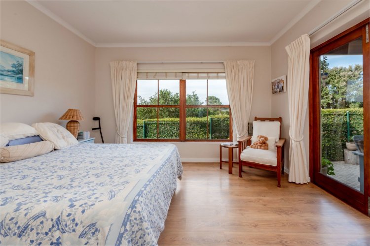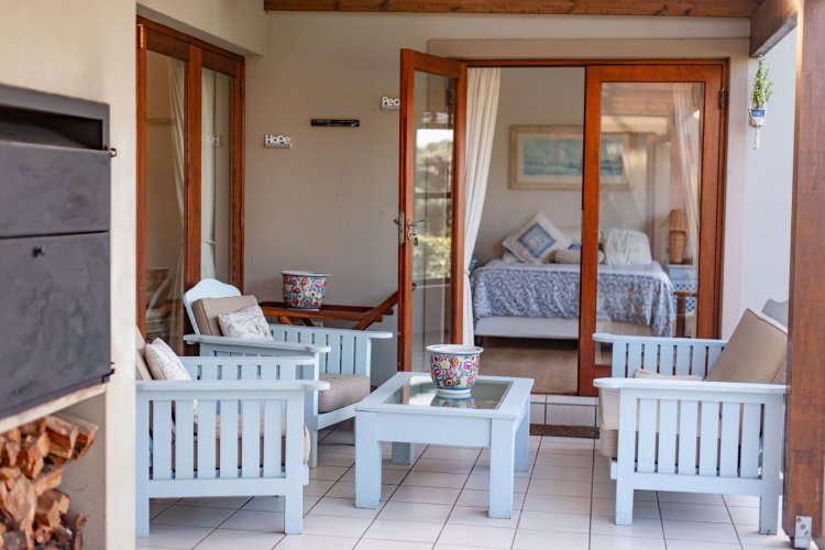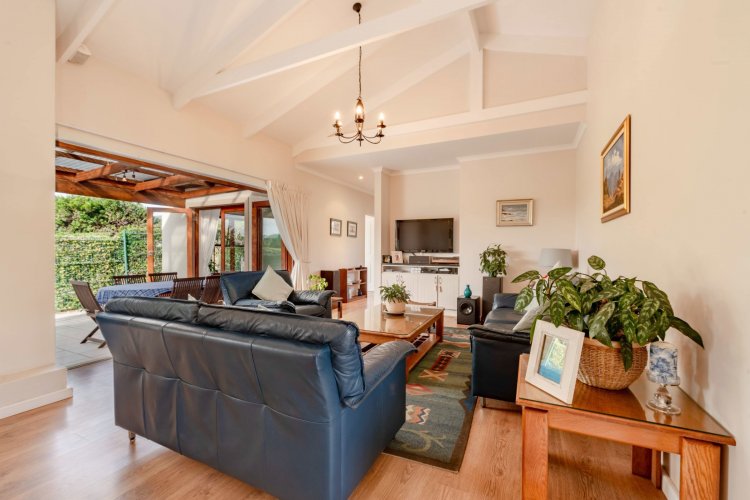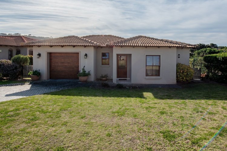 Exclusive Mandate. This carefully designed house is nestled privately at the end of a cul-de-sac on an unusually large stand. The spacious open-plan living/dining/kitchen area has open white roof trusses, contributing a sense of space and light. It can be warmed by a wood-burning fireplace. Stacking doors lead to a generous verandah for comfortable outdoor entertaining, including a built-in braai. The well-equipped kitchen is complemented by a separate scullery/laundry and direct access to an extra large single garage - with an ample work-bench area. An enclosed courtyard conceals the washing lines, gas bottles, hot water geyser and gardening equipment. The main bedroom, with French doors opening onto the verandah, has ample cupboard space and a full ensuite bathroom. The second bedroom opens onto the opposite end of the verandah. It has a bathroom alongside, which also acts as the guest cloaks. There is a north-facing study, or third bedroom, alongside the main-en-suite bedroom. The kitchen, bathrooms and verandah have tiled floors, whilst the rest of the house has natural wood-style laminate. This attractive property presents a wonderful opportunity for a work-from-home small family, or for those wishing to down-scale without compromising on room sizes. Whale Rock Gardens is a pet-friendly estate. Best of all, it is a five minute walk from Plettenberg Bay's famous Robberg beach. For bird-lovers, you cross the Robberg Vlei via a wooden boardwalk on the way to the beach. For those preferring a pool, Whale Rock Gardens boasts a half-Olympic size communal pool for the use of residents, as well as a boulle court. A small, discreet shopping centre is close by, minimising car usage for daily grocery needs.