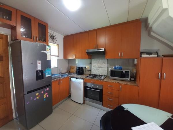 This property features three bedrooms and two bathrooms (one en-suite), along with a modern kitchen. Residents will enjoy a private patio and garden, as well as one covered parking bay. The complex is pet-friendly and offers 24-hour security with a guard house.