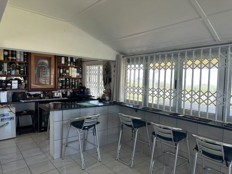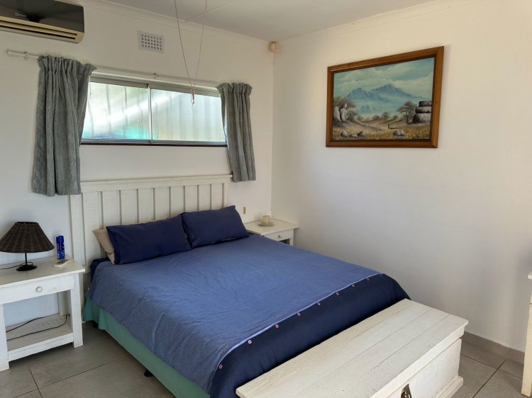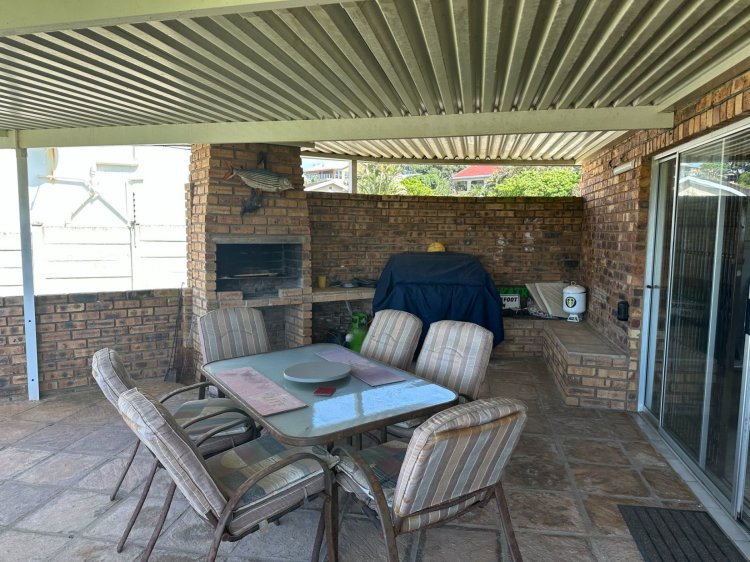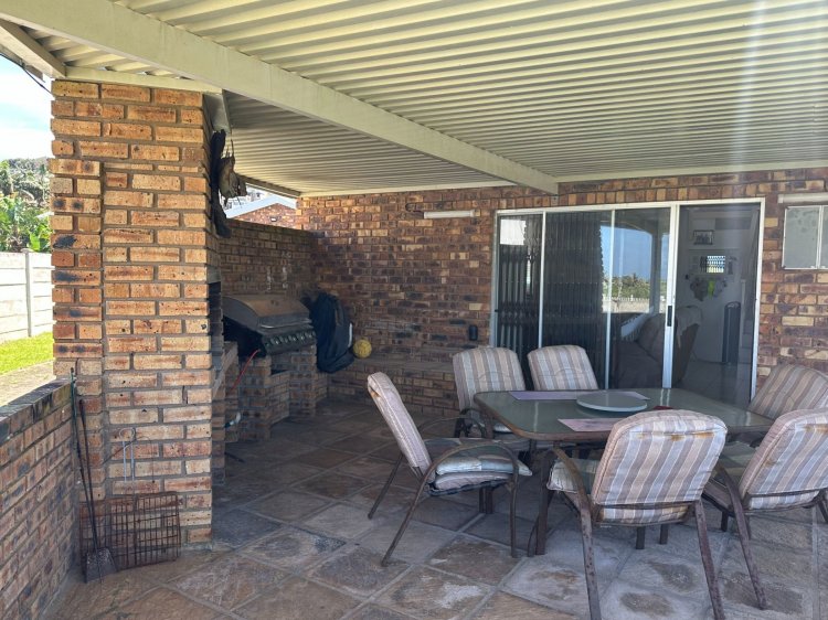 There are sliding aluminium windows that open onto a second covered patio and then onto the lawn area. There are beautiful ocean vistas from the patio. The sliding windows are protected by expanda guards for added security. The second secluded undercover patio is a haven for entertaining and besides the built in braai there is an additional gas braai.