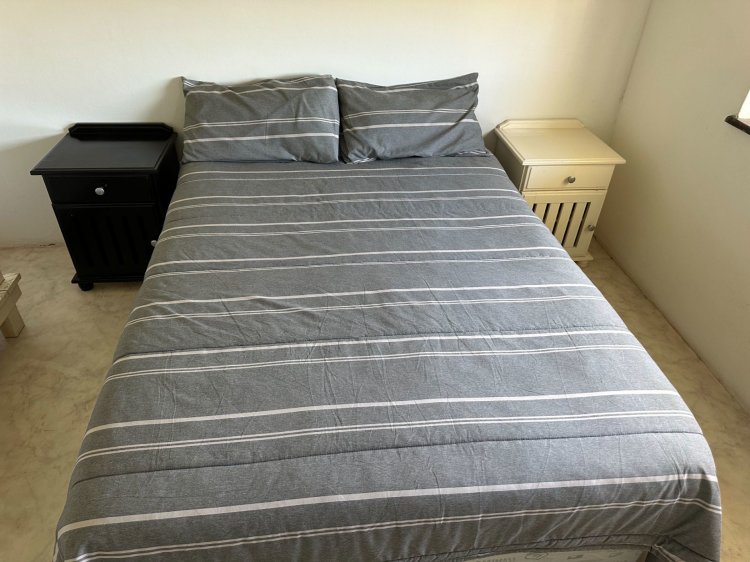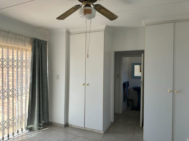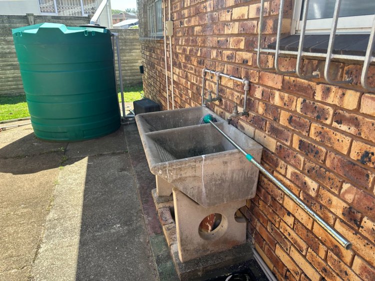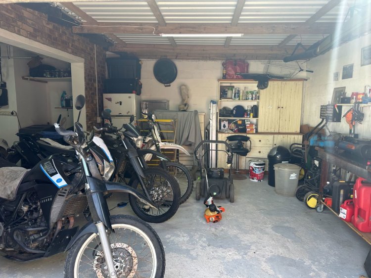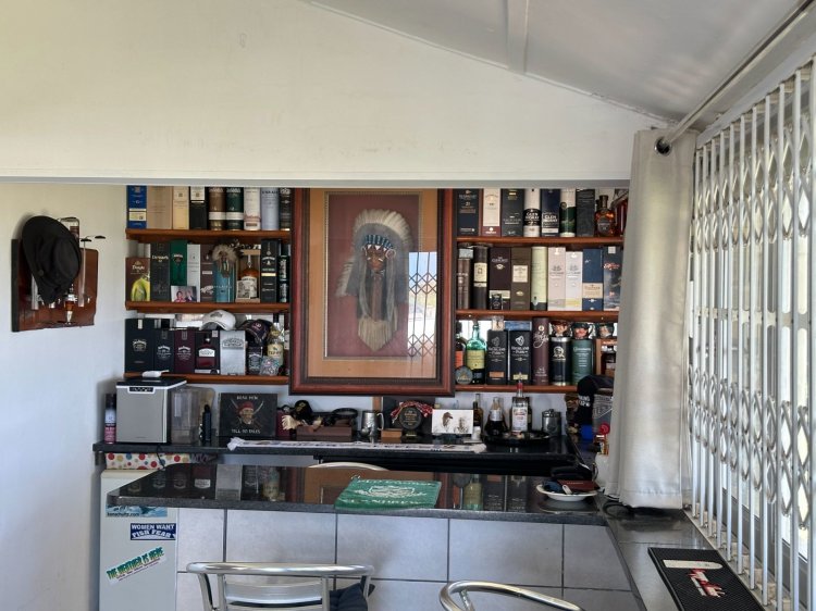 Fully enclosed with pre cast and palisade walling Automated vehicle entrance gate A full Solar System Comprehensive security system consisting of outside beams, internal movement detectors and external security lights. The system is linked to a local security company Fully burlgar barred Single automated garage and a second large garage. Outside wash basin and shower Back up water tanks with pressure pump Outside washing line Air conditioned Domestic toilet Fully lawned garden