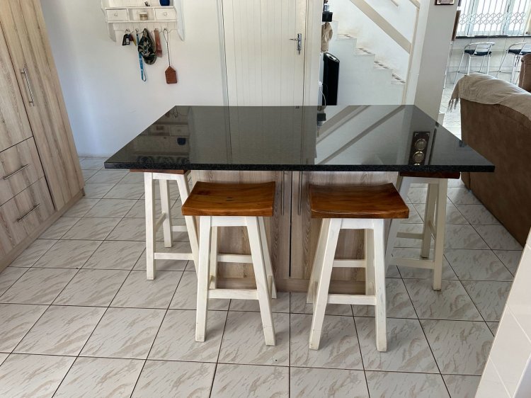 The open plan living areas are accessed from the braai area. The kitchen is modern with granite top working surfaces, an electric glass top stove with under cover oven and extractor, double wash up basin and more than adequate cabinetry.