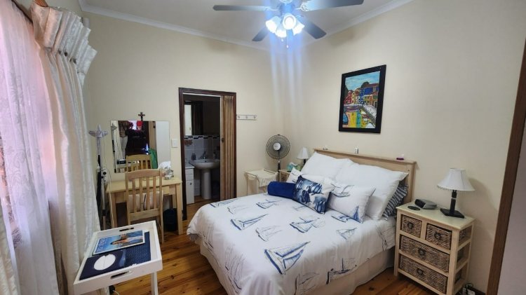 Entrance into the house from a large patio into the kitchen then dining room. A lovely formal lounge with fireplace and a guest room downstairs with en-suit. A cozy indoor jacuzzi with a door leading onto a balcony outside, also leading down to a small garden and wash line.