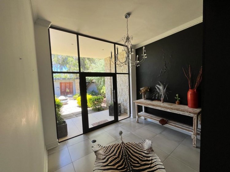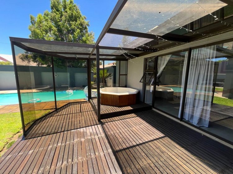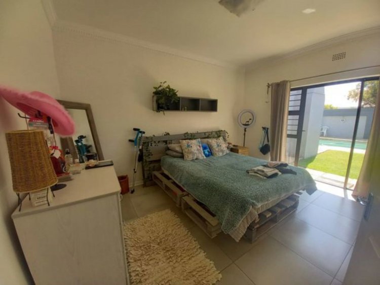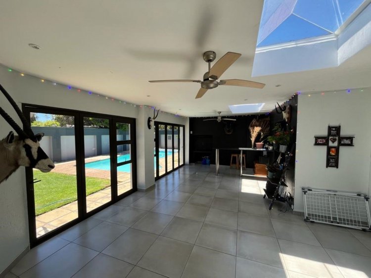 This elegant residence features open-plan living and dining areas flowing seamlessly to an entertainment patio, sparkling pool, and outdoor braai — perfect for family fun and entertaining!