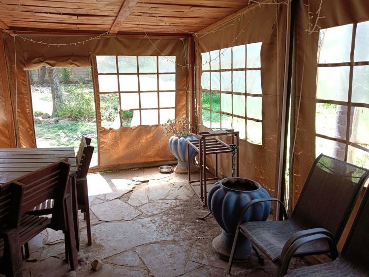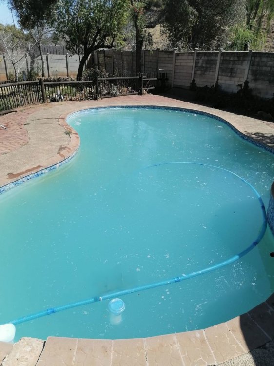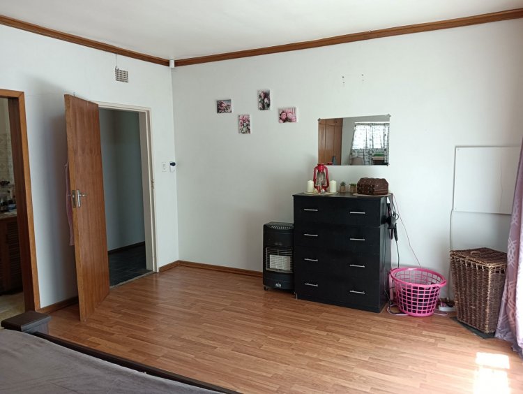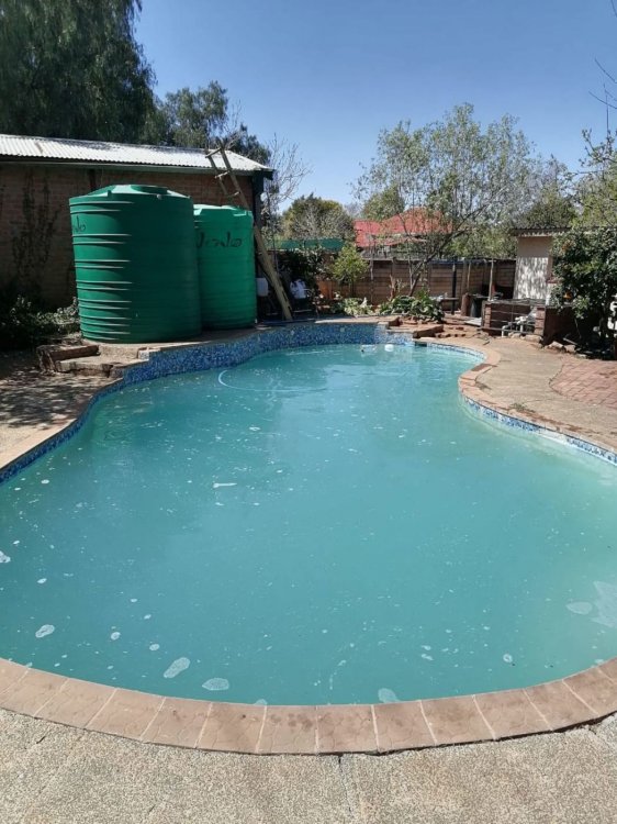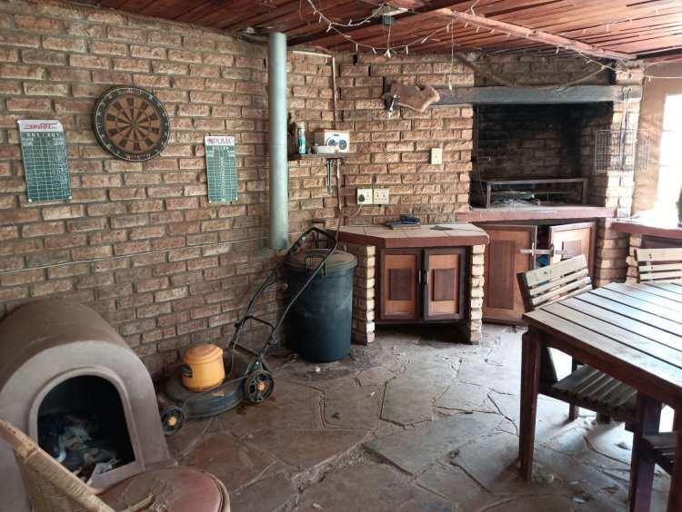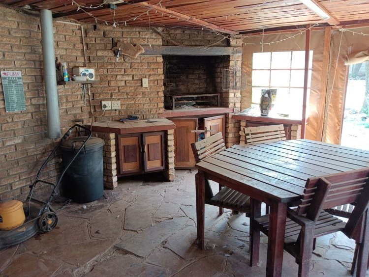 Outside, you'll find two storage rooms that can serve as garages for vehicles or additional storage. An inviting covered braai area is ideal for entertaining friends and family. The property also features a refreshing swimming pool, perfect for those hot summer days.