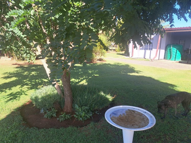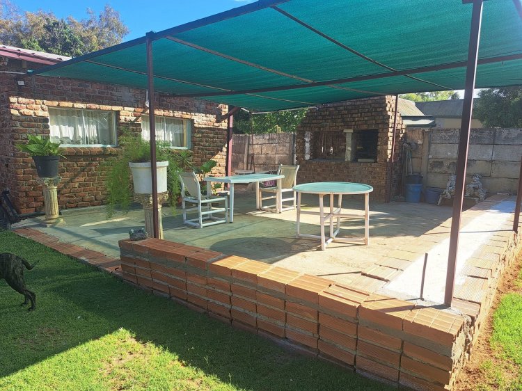 The Outside Patio under shade net with a well-equipped build-in braai offers total relaxation with a beautiful view of the substantial garden. On this 3,213 square meter erf there is a lot of space for children and pets to play. There is under covered parking for 2 vehicles. The Property is equipped with a 150L Solar Geyser for energy-efficient water heating and a 2000L Water tank.