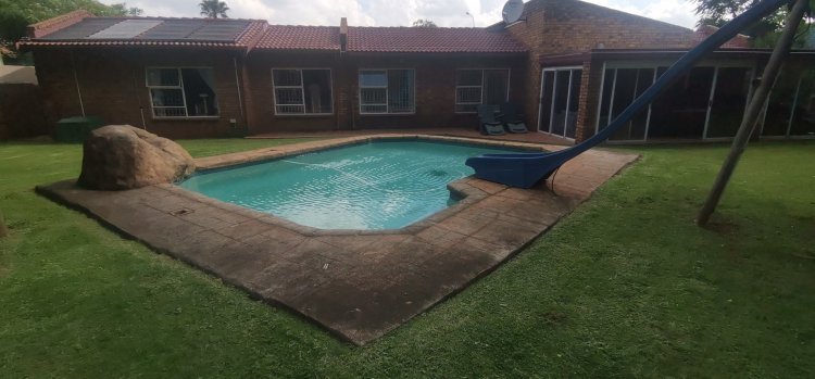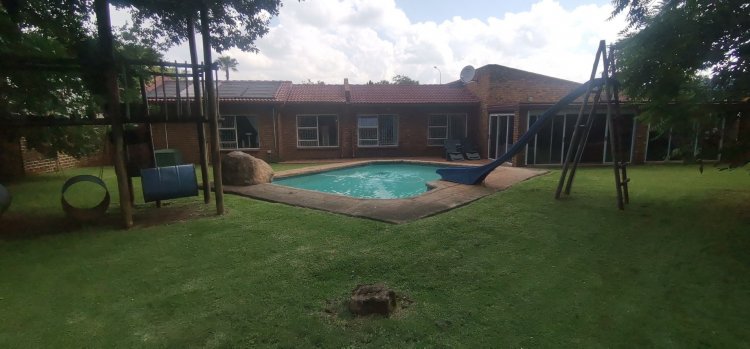 Nested within a highly- sought after boomed-off community. This elegant 4 Bedroom home offers the perfect blend or comfort, privacy and a modern living from the moment you enter the secure access controlled neighbourhood, you are welcome by peaceful streets, landscape surroundings and a strong sense of exclusivity. This face brick property features 4 bedrooms with B. I. C including a master suite with a walk- in closet, private en-suite bathroom. Additional en-suite bathroom perfect for privacy and for guests. Double automated garaged and 2 access gates(Automated). Covered parking 2,open parking 10,magnificent 2 private lounges and 2 unique dining room area. This home has many outstanding features like a well secured fence, stunning garden, sparkling pool with a water slide and jungle gym perfect for outdoor fun and activities, welcoming entrance Hall, decent size family/TV room, warm spacious gourmet kitchen awaits you, laundry room, store room, study, 24Hrs security, alarm, CCTV, Last but not least the impressive patio/sunroom/entertainment area with a jacuzzi, built- in-braai and bar area. This oasis is one of a kind and must be seen to be appreciated, only pre-approved clients will be taken to view!!!