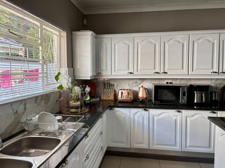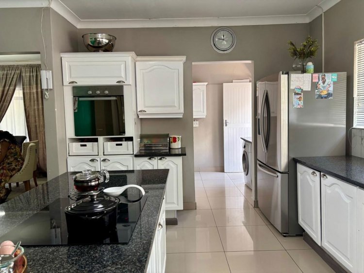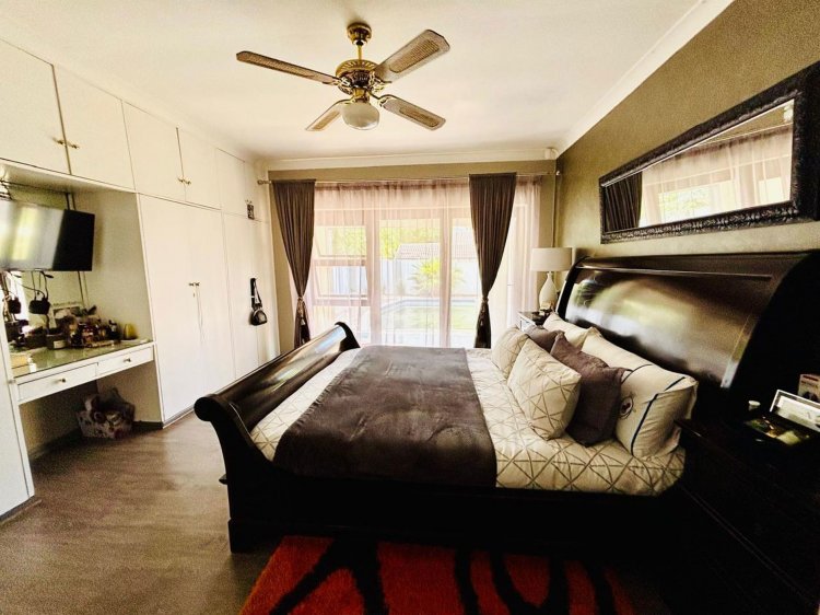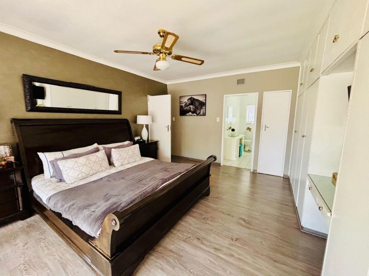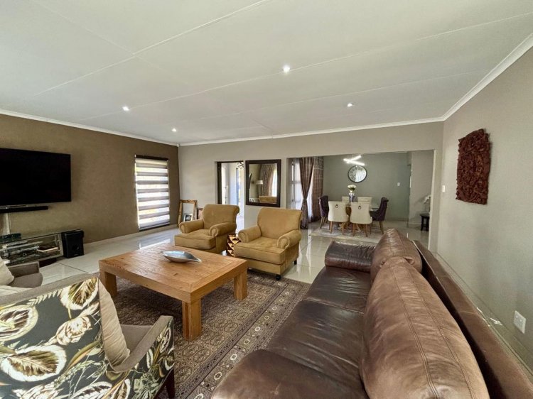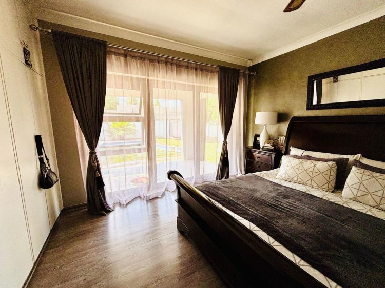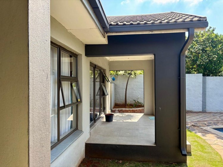 Your Dream Family Home in Dan Pienaar Awaits! Modern, elegant, well maintained and filled with light – this 4-bedroom home offers everything you need for comfortable family living in one of Bloemfontein's most sought-after suburbs. From the moment you step inside, you'll feel at home in the spacious open-plan living areas, designed for easy flow and connection. Stack-away doors open to a covered patio with built-in braai, overlooking a sparkling pool and leafy garden – a perfect setting for long summer days and memorable gatherings. The modern kitchen is a delight for any home cook, offering ample space, a separate pantry, scullery and a dedicated laundry area to keep daily life running smoothly. The main bedroom is a true luxury retreat, featuring ample built-in cupboards, an elegant en-suite bathroom, and sliding doors that open onto a private patio overlooking the garden and swimming pool – the perfect place to start or end your day in peace. Each of the additional bedrooms is spacious, bright, inviting, and designed with comfort in mind, giving every family member their own retreat. Additional Features: • Generous, treed garden with plenty of space for kids and pets • Domestic quarters with separate toilet • Drive-through garage for secure parking and backyard access Perfectly located near top schools, shops and popular shopping centres, and main routes, this home brings together space, convenience, and timeless style. Don't wait – call us today to book your private viewing!
