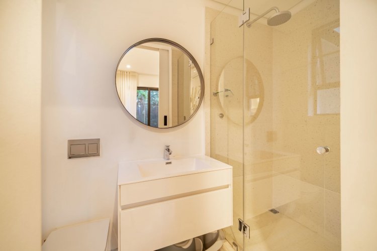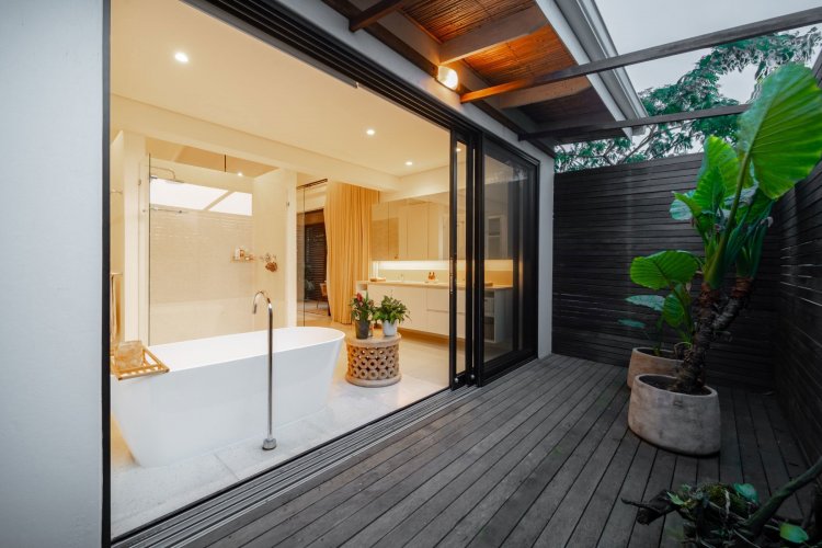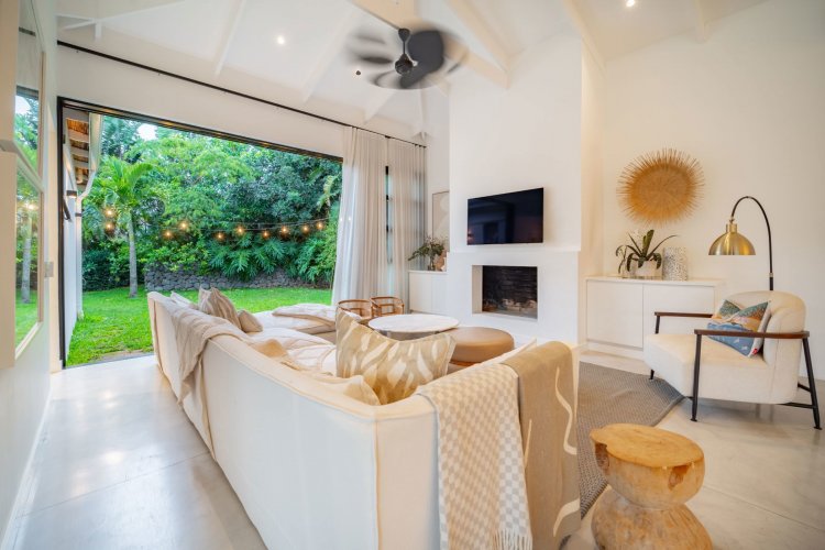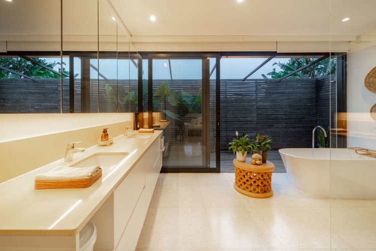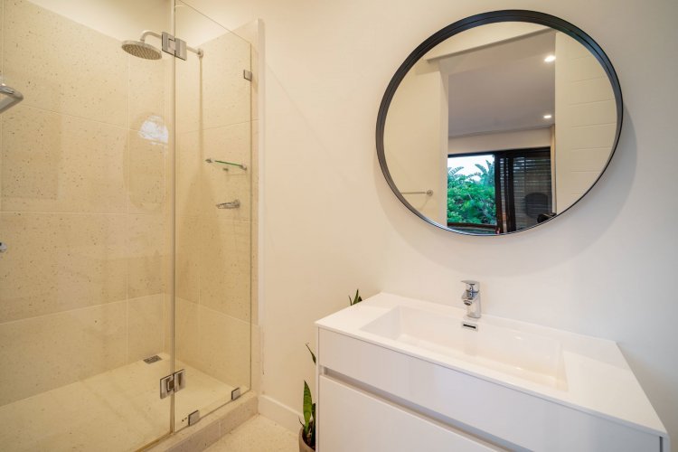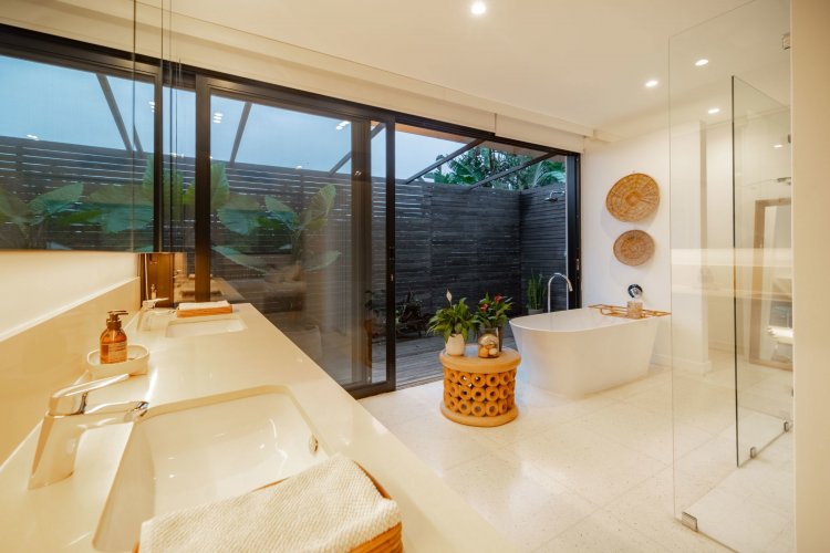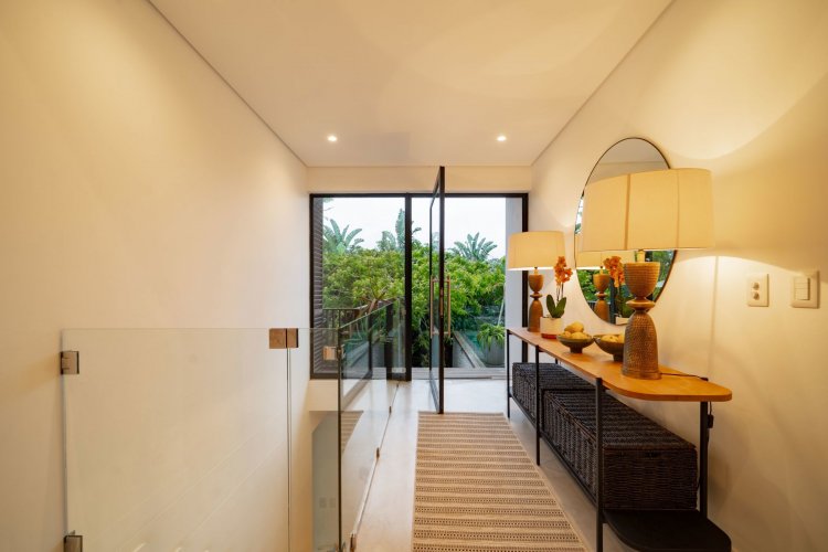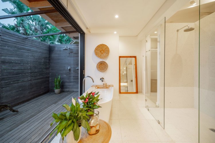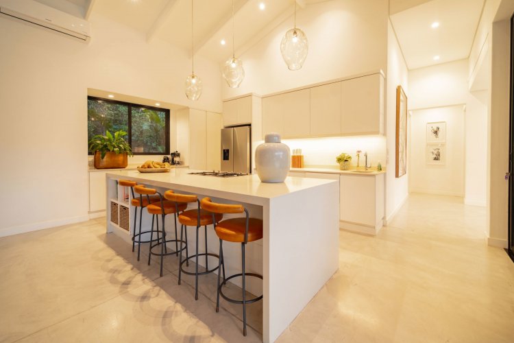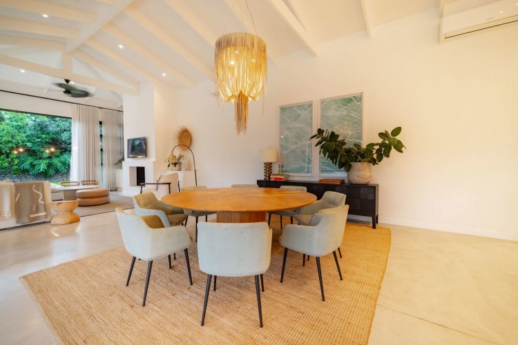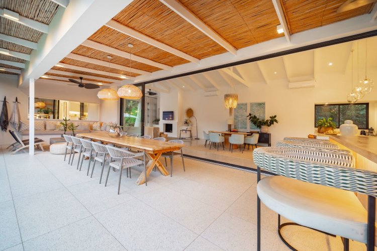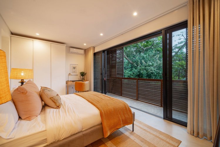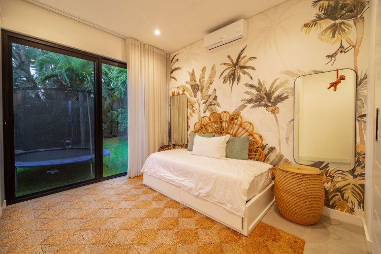 The master suite is a true retreat, complete with a private terrace, walk-in dressing room, and a stunning indoor-outdoor bathroom – ideal for evening showers under the stars. All four bedrooms include their own en-suite bathrooms, with two near the master, and a more private fourth suite with its own balcony overlooking the treetops – perfect for guests or older children.