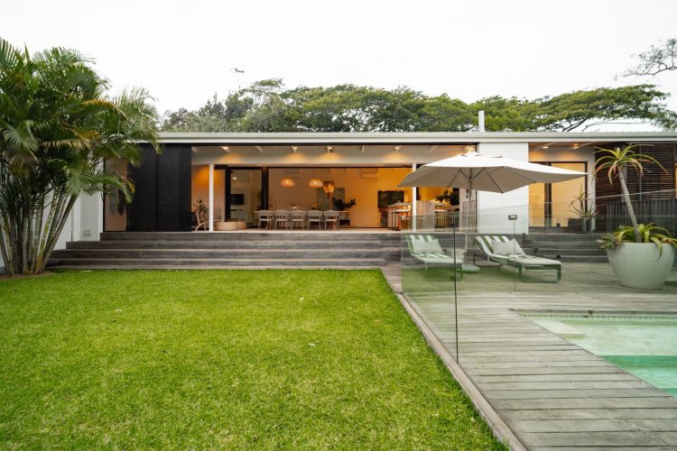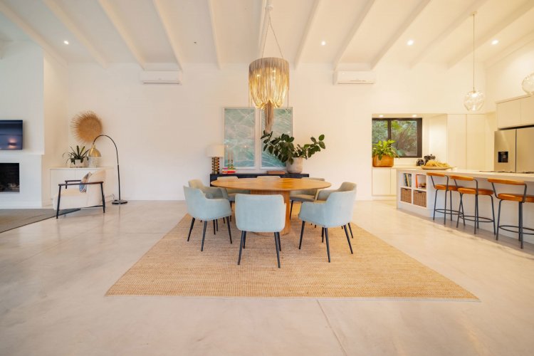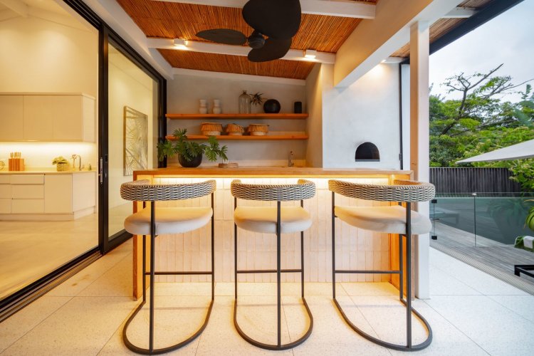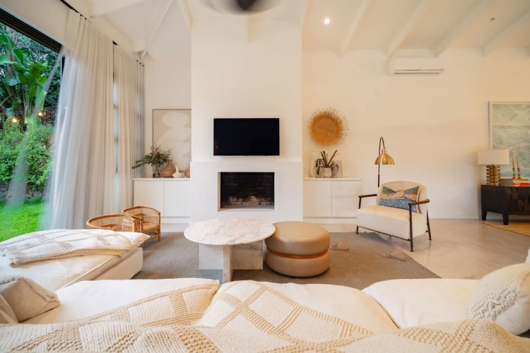 Created by architect Julia Rutherford, the home is perfect for relaxed family living and effortless entertaining. Generous open-plan interiors flow out to a spacious, sunlit patio where you'll find a built-in bar, pizza oven, and a sparkling pool surrounded by landscaped gardens. A second garden at the back of the home creates a safe and fun space for kids to play.