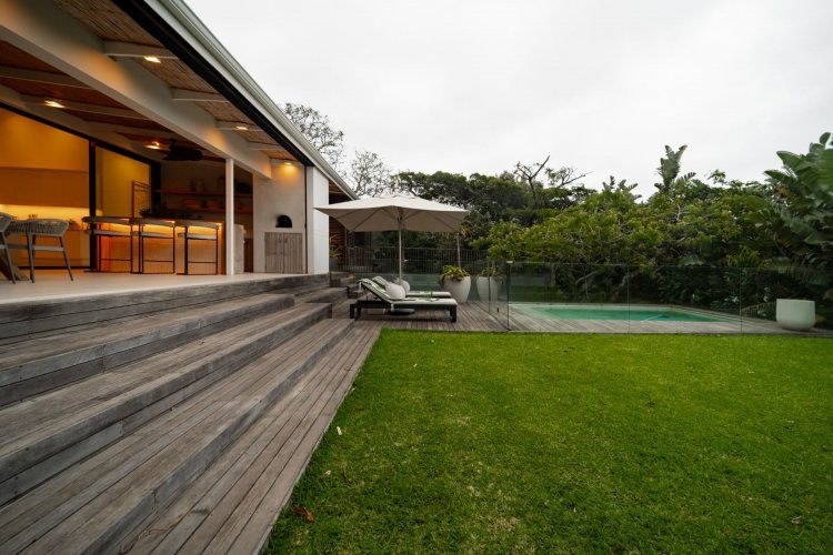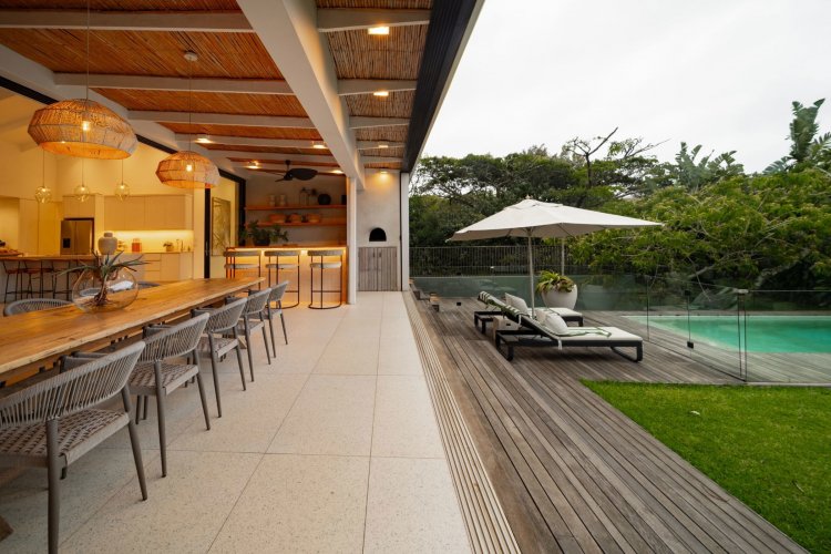 Set in a quiet and private pocket of the exclusive Elaleni Coastal Forest Estate, this beautifully designed four-bedroom home offers a seamless blend of modern coastal living, luxurious finishes, and complete privacy.