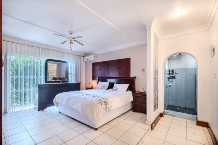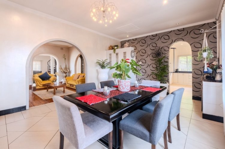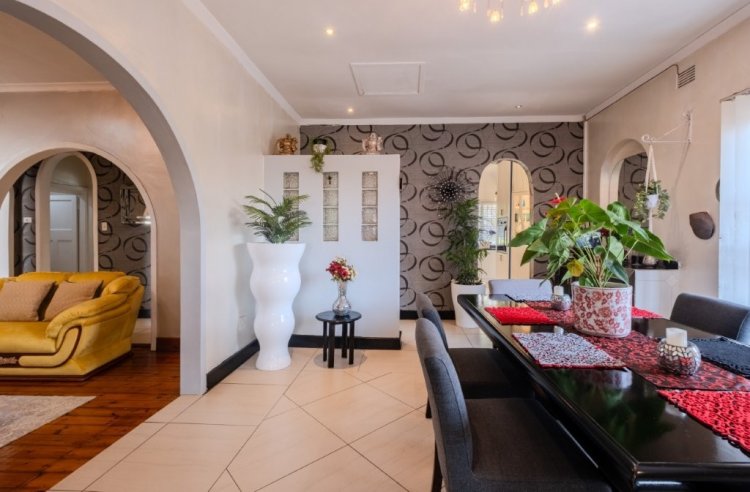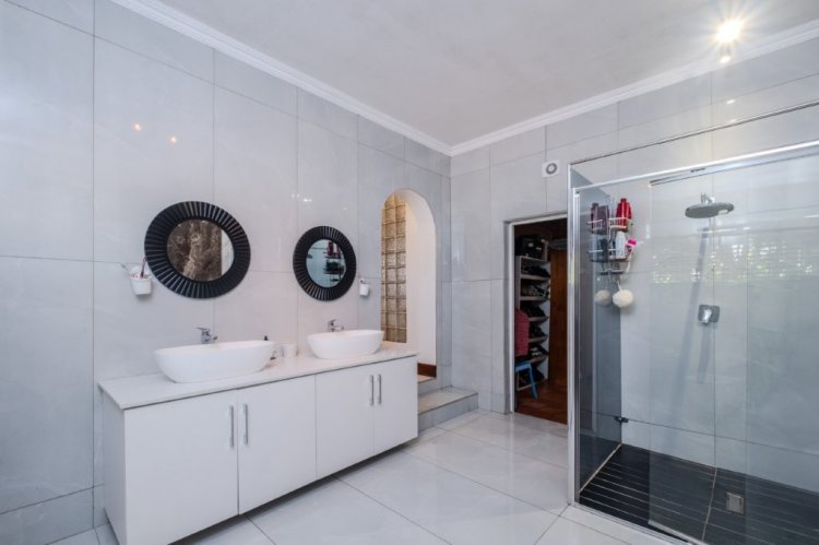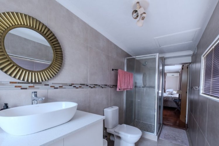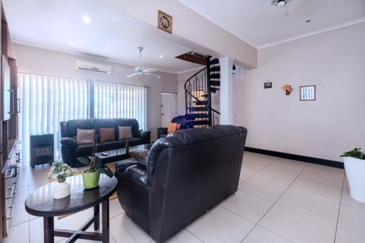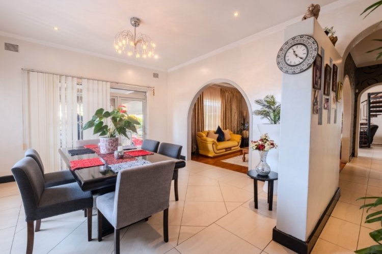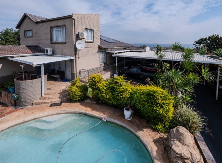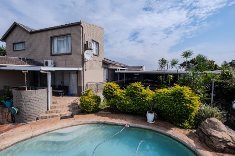 Bedrooms & Bathrooms: • All five bedrooms are generously sized with built-in cupboards and en-suite bathrooms • The main bedroom features a luxury en-suite plus a private jacuzzi room with a sliding door to the garden • A spiral staircase from the TV lounge leads to an upper-level private bedroom with en-suite—an ideal guest suite or retreat Extra Features That Add Real Value: • Oregon pine flooring and quality tiles throughout • Sparkling swimming pool nestled in lush, established gardens • Solar-powered inverter system (5KPV) with lithium battery • 2000L JoJo tank connected to the home for water backup • CCTV security system already installed for peace of mind • Separate laundry room and staff quarters • Two single garages plus additional parking for at least four vehicles • Slabbed roof section—ideal for future expansion or adding a second floor Prime Location: Conveniently situated close to excellent schools, shopping centres, and medical facilities, this property offers both luxury and everyday convenience in one complete package. If you’re looking for a move-in-ready home with room to grow, thoughtful extras, and standout design—this is it. Get in touch today to arrange a private viewing.