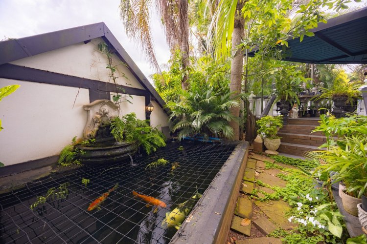 Special features include two gazebos one of which has been glassed-in, a bedroom and bathroom downstairs which can be opened onto the music room thus creating a private suite. Numerous entertainment rooms flow from one to the next and then out to a very large wraparound verandah which overlooks the pool and fantastic koi pond with a weir at the bottom of the pond.