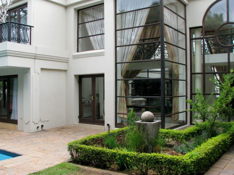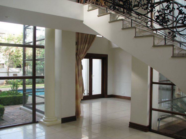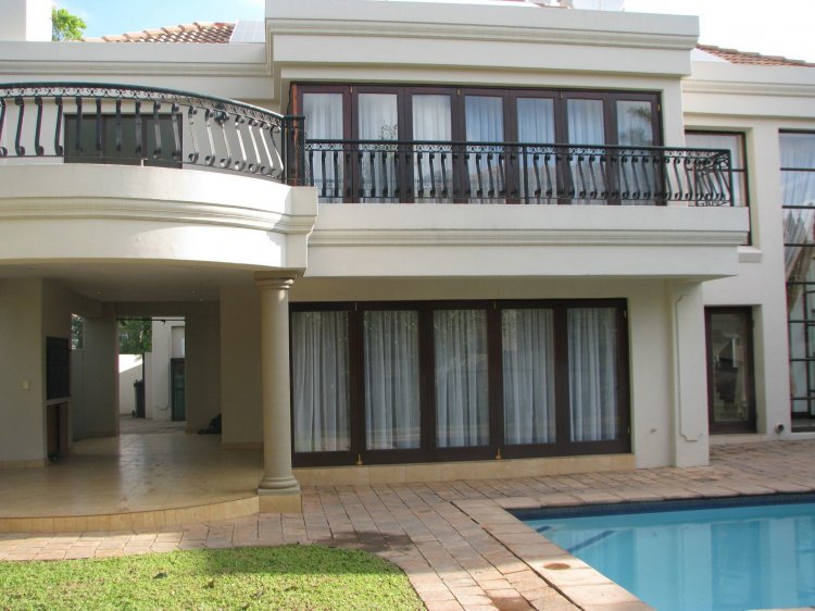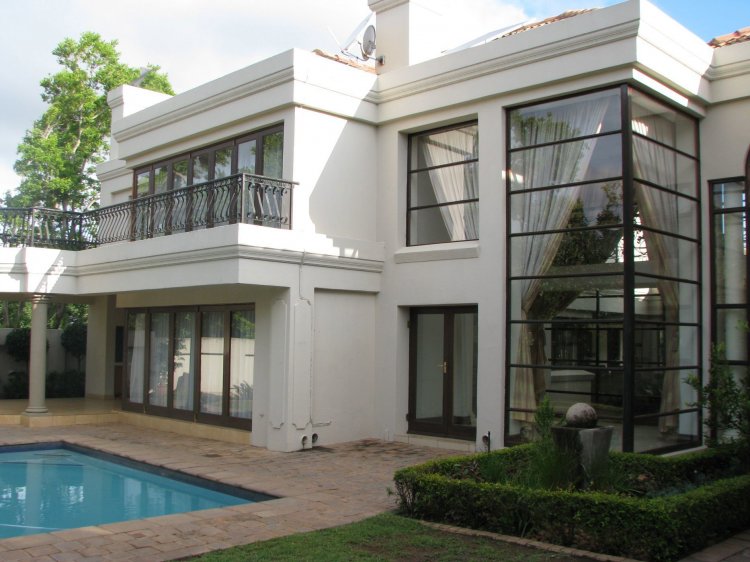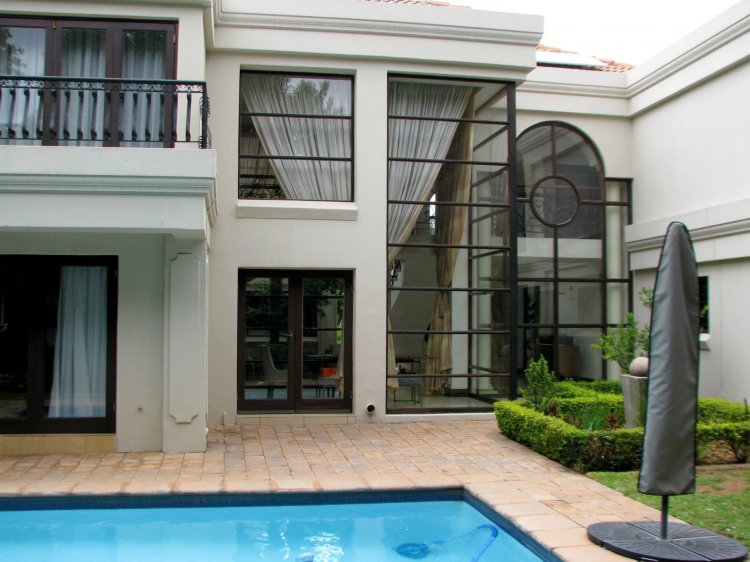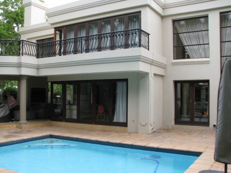 Sole and Exclusive Mandate. This prestigious home was designed by the renowned Nico van der Meulen architects. The quality of the design is immediately apparent as you open the double doors at the entrance. The sweeping stairway with its intricate metal bannisters gives you an indication of the quality this home. A big plus is that it has a ground floor study, with a private entrance. Also on the ground floor is an ensuite guest bedroom plus an executive quality kitchen overlooking the lounge, undercover braai area and the pool. Upstairs are three ensuite bedrooms and a big lounge area.