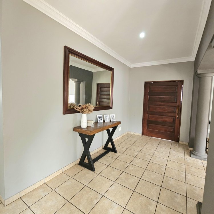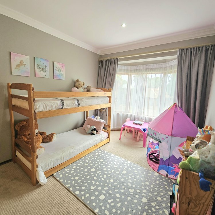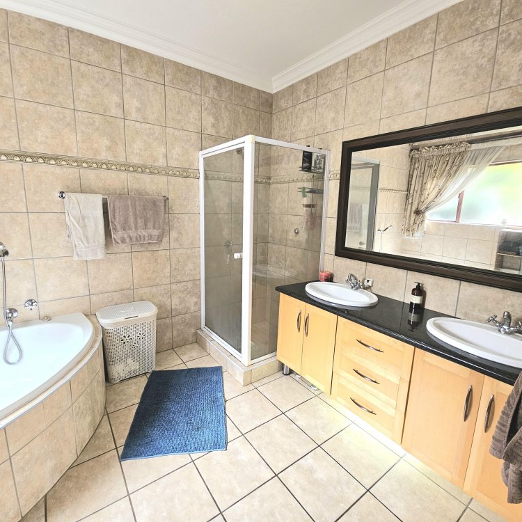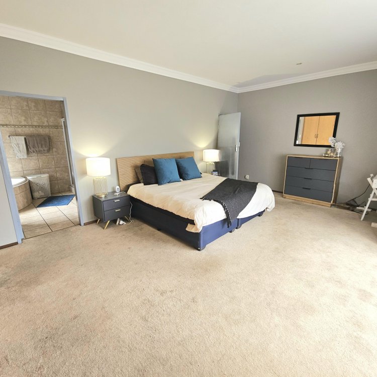Welcome to a home that offers space, comfort, and lifestyle in the sought-after Irene View estates. Accommodation: 4 spacious bedrooms, including a private guest suite with garden access. 3 bathrooms plus a guest cloakroom. The master suite is exceptionally spacious, with bay windows, room for a study or relaxation corner, and a luxurious en-suite featuring a bath, shower, double vanity, and toilet. Living Areas: Modern kitchen with space for a 6-seater table, fitted with a 5-plate gas stove, extractor, and a separate scullery with room for 2 appliances. Multiple light-filled living areas, enhanced by charming bay windows. Upstairs offers 2 well-sized bedrooms with built-in cupboards, a full bathroom, and a cozy PJ lounge. Outdoor Lifestyle: Covered patio overlooking the sparkling pool – perfect for entertaining. Neat, low-maintenance garden. Double garage with built-in cupboards for extra storage. Location: Situated approximately 35 km from Sandton and 10 km from Pretoria's city center, Irene offers convenient access to major highways: N1 Highway: Approximately 1 km away R21 Highway: Approximately 5 km away This strategic location provides residents with easy connectivity to surrounding areas while maintaining a peaceful suburban setting. Easy access to a variety of shopping centers, restaurants, and amenities right on your doorstep. This home is ideal for families looking for comfort, space, and security within a prestigious estate.