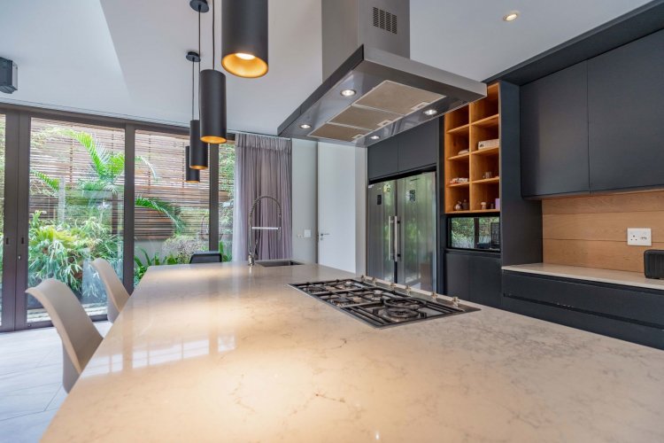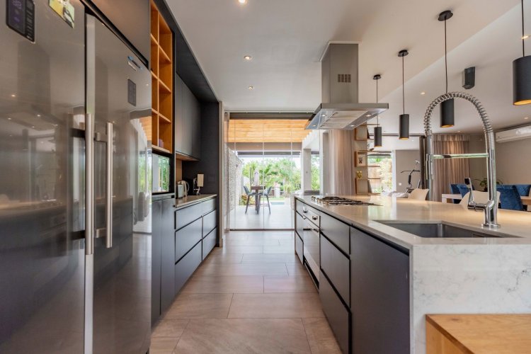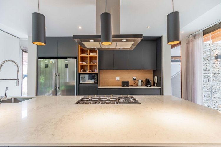 The kitchen is a showpiece on its own — sleek, functional, and designed with the home chef in mind. It boasts premium appliances, ample workspace, and a layout that allows you to cook and connect at the same time. A scullery and pantry keep everything neat and organized, while a separate laundry room adds everyday convenience.