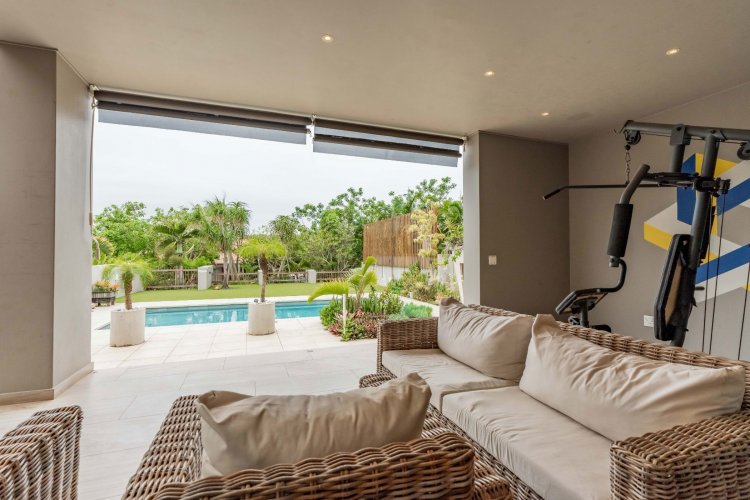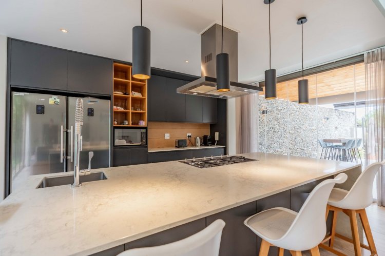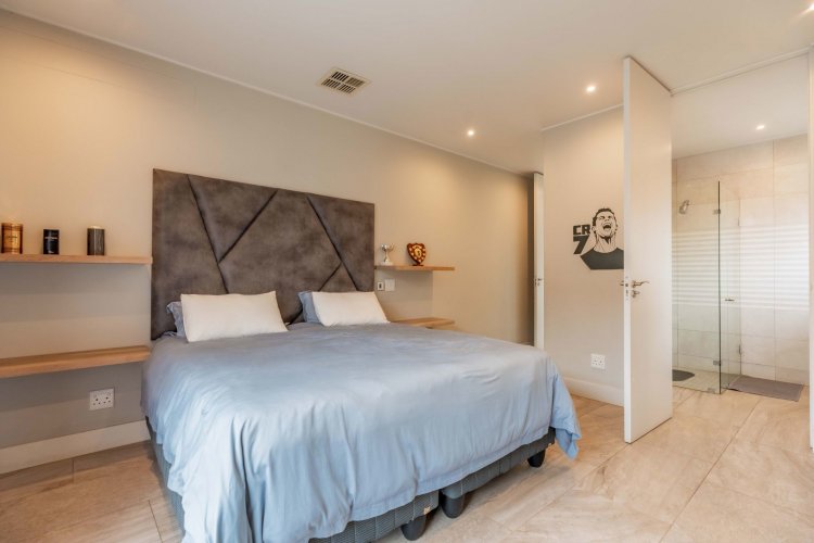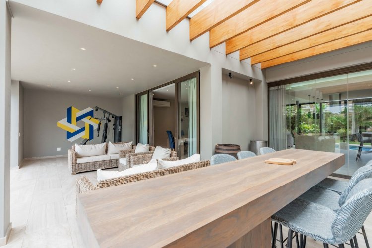 Standout Features: Double Garage with direct access to the home Extra Parking for up to four additional vehicles Staff Accommodation Ducted & Split Unit Air Conditioning JoJo Tank with Filtration System and Solar Geyser Storm Blinds on patio and Astro Turf garden areas Top Security with beams, alarm, and 24-hour manned estate access
