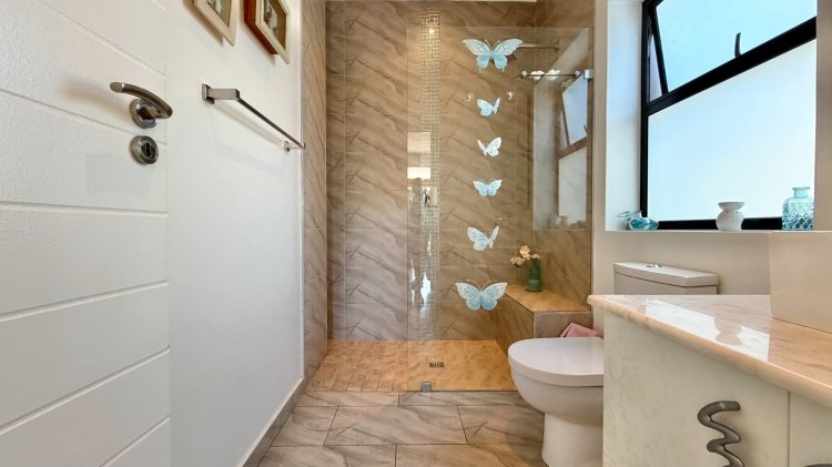 The expansive open-plan living areas flow seamlessly through large stack doors onto a beautifully enclosed patio entertainment space, complete with a built-in braai and frameless glass stacker doors - ideal for year-round entertaining. The heart of the home is the stylish kitchen, featuring a large centre island, separate scullery, and a walk-in pantry, making it as functional as it is impressive. Two spacious balconies further enhance the indoor-outdoor lifestyle, offering elevated views and additional relaxation spaces.