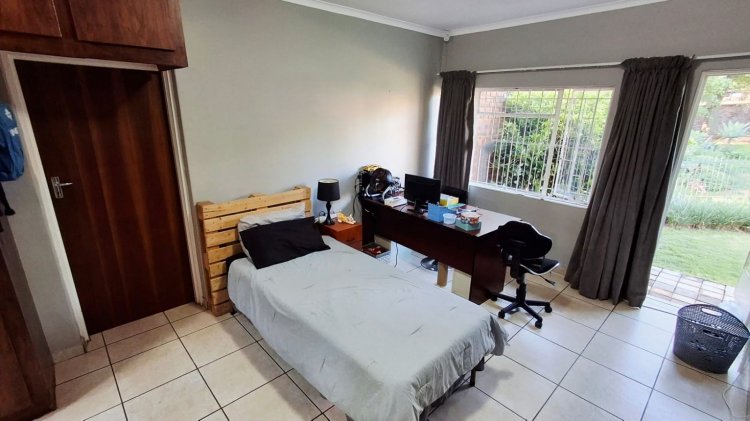 PROPERTY FEATURES: • 4 spacious bedrooms, including a main bedroom with en-suite bathroom • 2 bathrooms plus a separate guest toilet • Well-appointed kitchen with both electric and gas stoves and hobs • Separate scullery • Dining room, lounge, and dedicated study/home office • Entertainment room with sliding doors opening onto an enclosed stoep • Sparkling swimming pool and a spacious garden • Double garage • Covered parking for visitors • Remote-controlled access gate