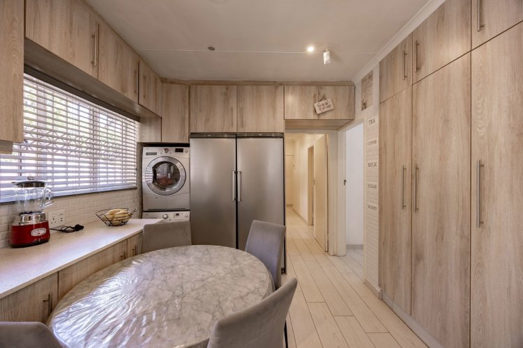 Step into absolute perfection with this sparkling, modern 4-bedroom residence, meticulously prepared for its new owners. From the moment you arrive, the convenience and quality are evident, starting with the secure automated gate and the impressive, tiled double garage. This is a home designed for effortless living, featuring tiling throughout every room, ensuring a consistently clean and contemporary aesthetic that is both beautiful and easy to maintain. Included are the double door fridge and washing machine and tumble dryer.