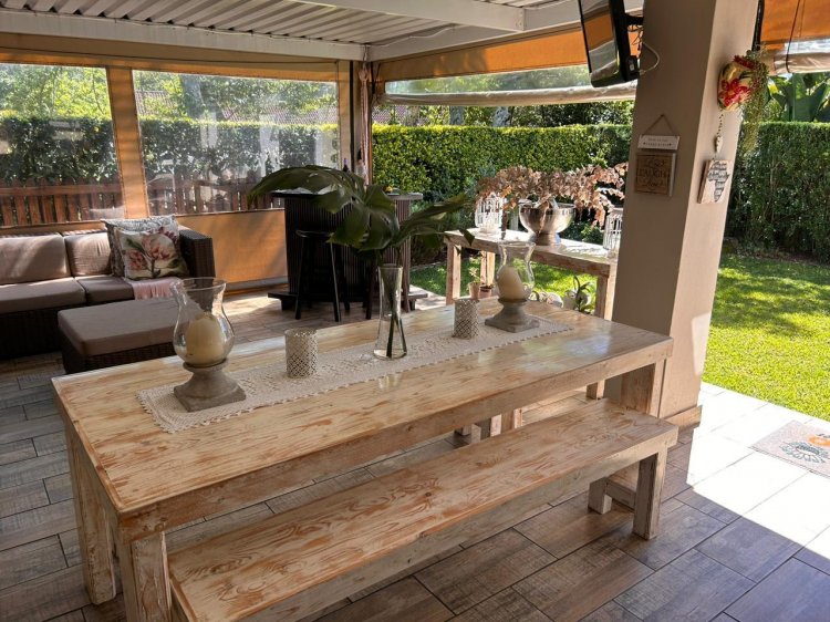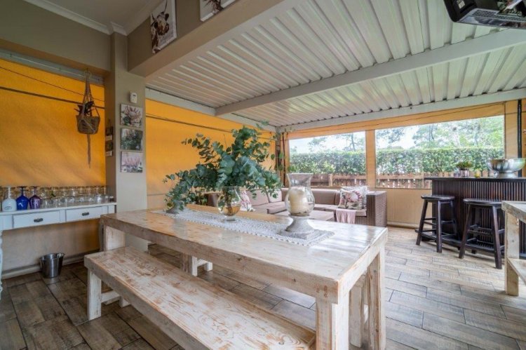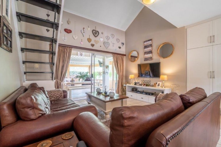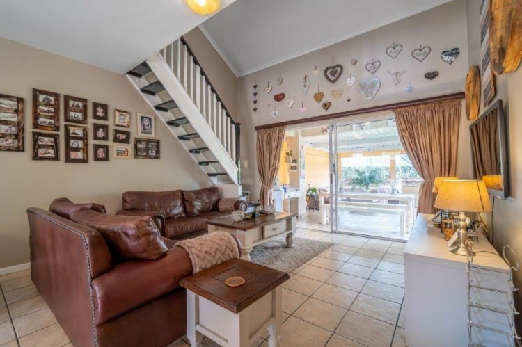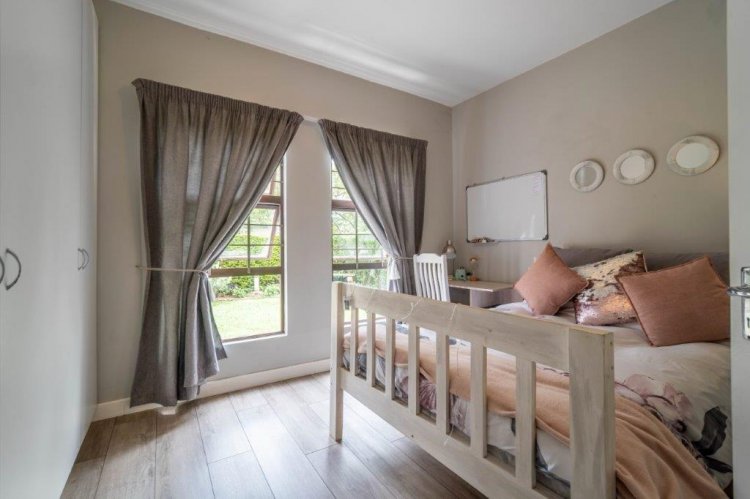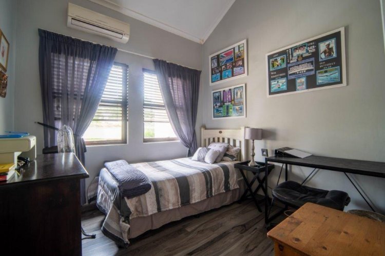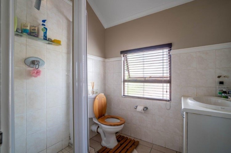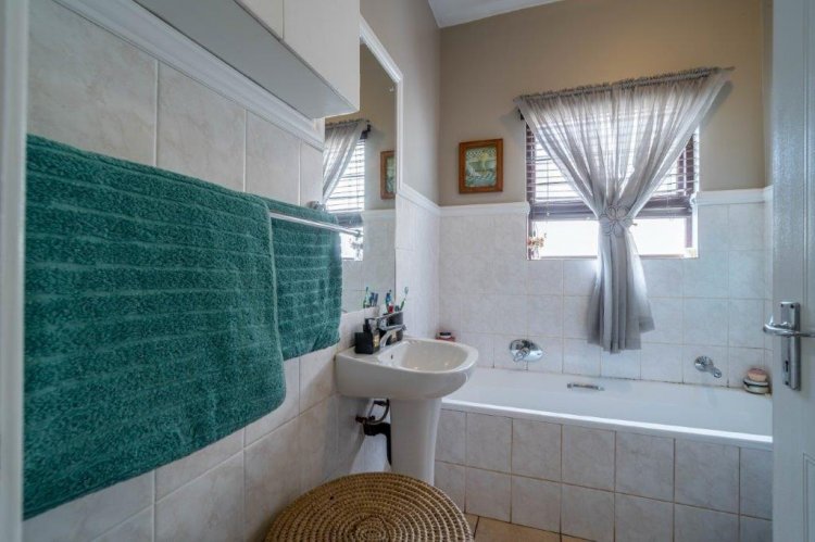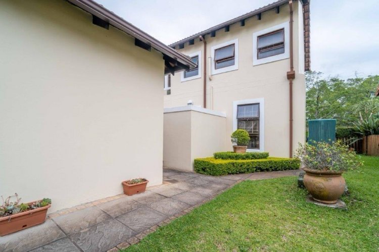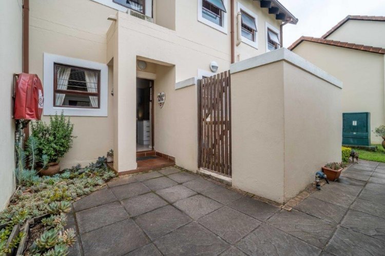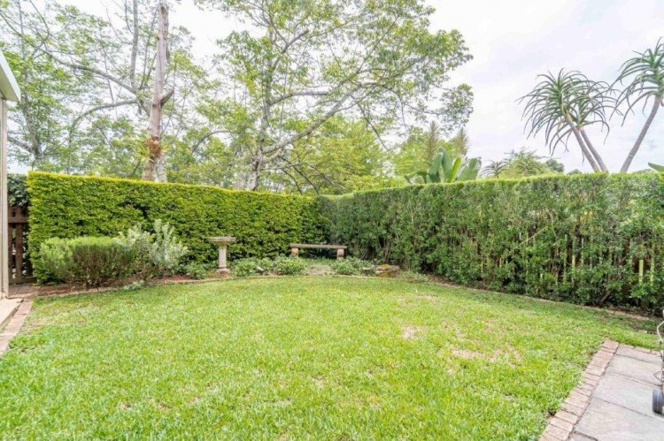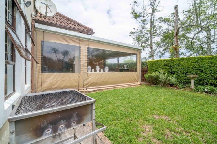 The patio side of the unit has a compact garden which is fenced off and as it is within the common property of the estate there is scope to increase this footprint. The double garage is plumbed for laundry machines, with ample additional plug points for the DIY enthusiast. Visitors have the opportunity of parking in front of the garage without hindering traffic. The courtyard between the kitchen and garage allows drying wash lines and garbage bin storage, with scope to enclose as a weatherproof area.