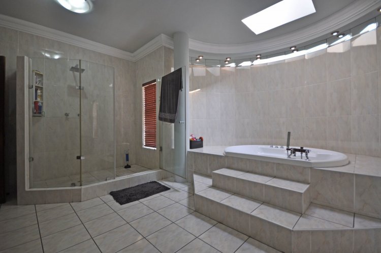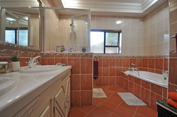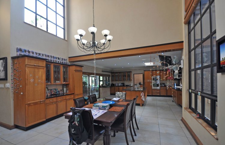 Boasting 5 spacious bedrooms, 3.5 bathrooms, and 2 en-suite bathrooms, this property ensures privacy and convenience for the whole family. A comfortable study with ample cupboard space provides the ideal work-from-home setup. Enjoy quality time in the TV/family room, while the open-plan kitchen and dining area create a welcoming hub for everyday living. The kitchen is complemented by a separate scullery for added functionality. For entertainers, this home truly shines. The spacious bar area flows effortlessly onto a covered patio featuring a built-in braai, overlooking a sparkling swimming pool and jacuzzi—perfect for hosting family and friends all year round. Parking and storage are well catered for with a triple garage, plus additional garage space that can comfortably accommodate a boat and three smaller vehicles.