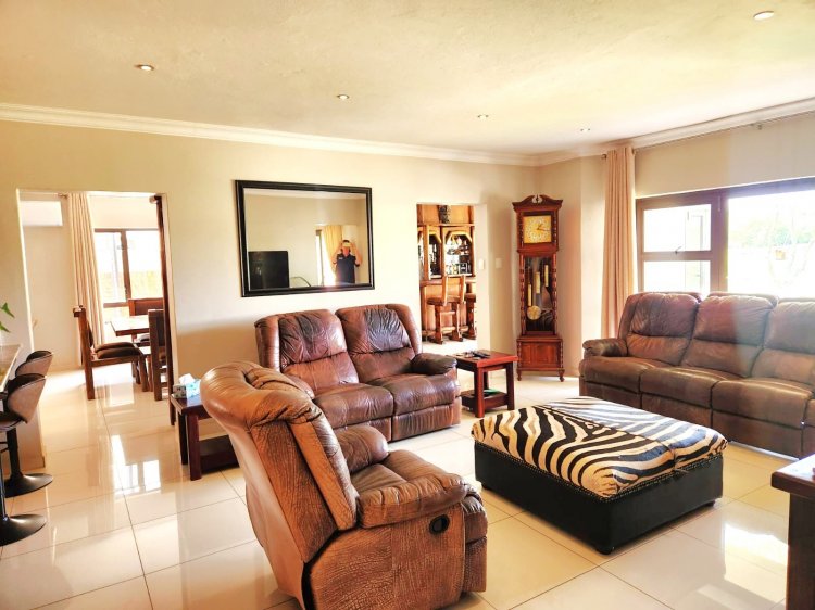 Outside: Covered patio leading to a sparkling swimming pool Patios for two bedrooms plus a large private patio for the main suite Flatlet – ideal for extra income or Airbnb rental Four garages, JoJo water tank & generator for convenience and sustainability.