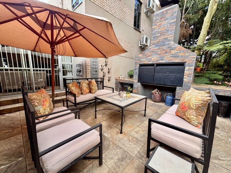 From the moment you enter the foyer, the layout draws you in. To the right, generous living spaces unfold effortlessly: a formal lounge warmed by a fireplace, a private office ideal for work-from-home living, and a spacious TV room. Both entertainment lounges open onto a well-designed outdoor area with a built-in braai, perfect for hosting, relaxing, or weekend gatherings. The dining room sits centrally, flowing seamlessly into a beautifully fitted kitchen with granite tops and a separate scullery.