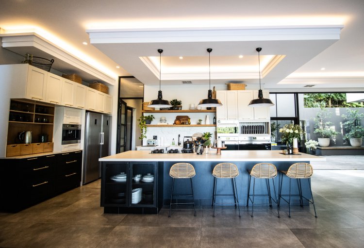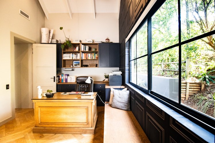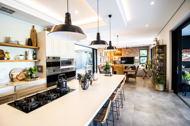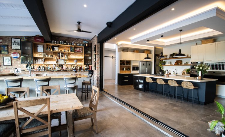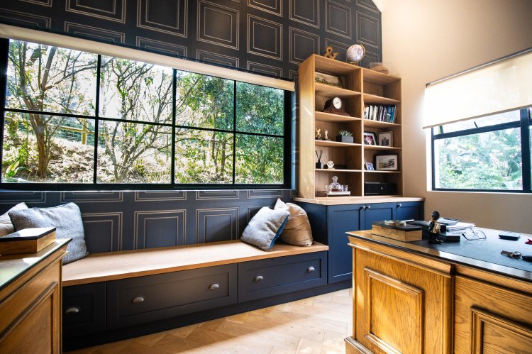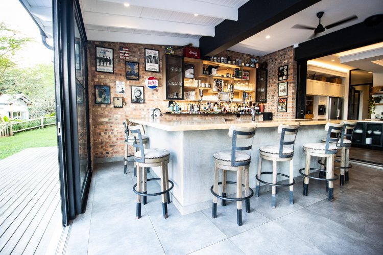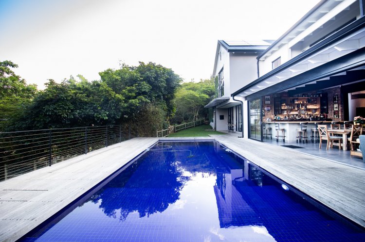 The interiors showcase sophistication throughout. A state-of-the-art open-plan kitchen, complete with a scullery and walk-in pantry, flows seamlessly into the dining area. The home offers two luxurious lounge areas, each designed for effortless living and elegant entertaining. A dedicated bar area enhances the home’s social appeal, while a private executive office provides an ideal work-from-home environment.